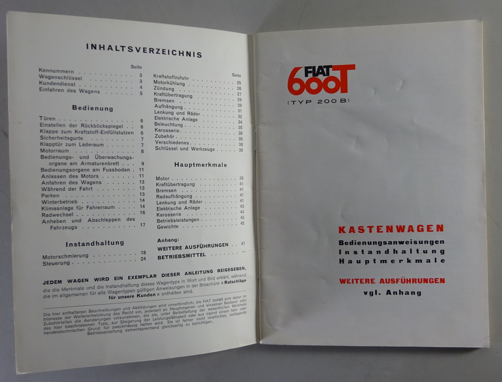 Betriebsanleitung / Handbuch Fiat 600 T Typ 200 B Stand 11/1965