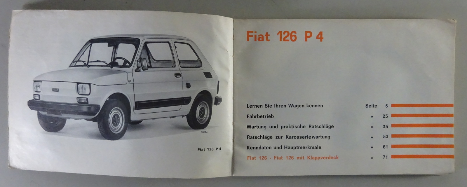 Betriebsanleitung / Bedienungsanleitung / Handbuch Fiat 126 Inhalt:... mehr