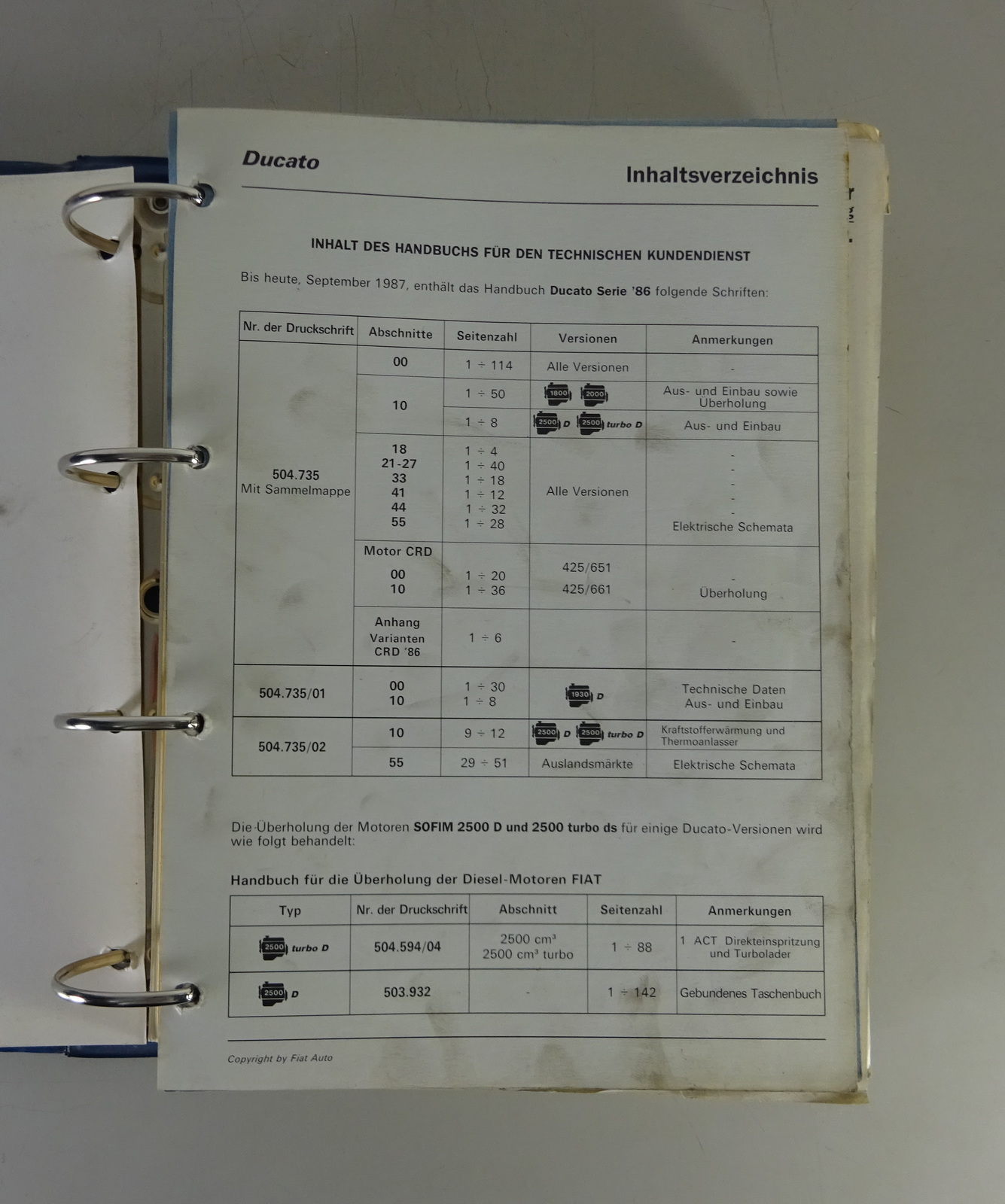 Werkstatthandbuch / Reparaturanleitung original Fiat