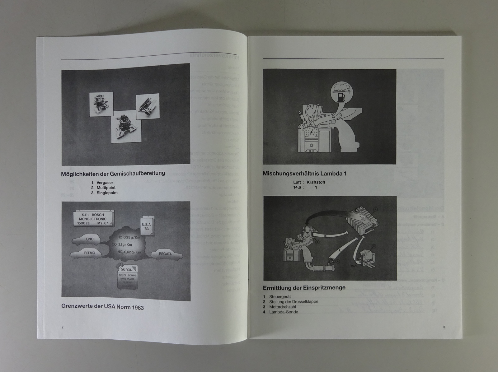 Schulungsunterlage Fiat Einspritzanlage S.P.I Bosch Monojetronic von 8/1987