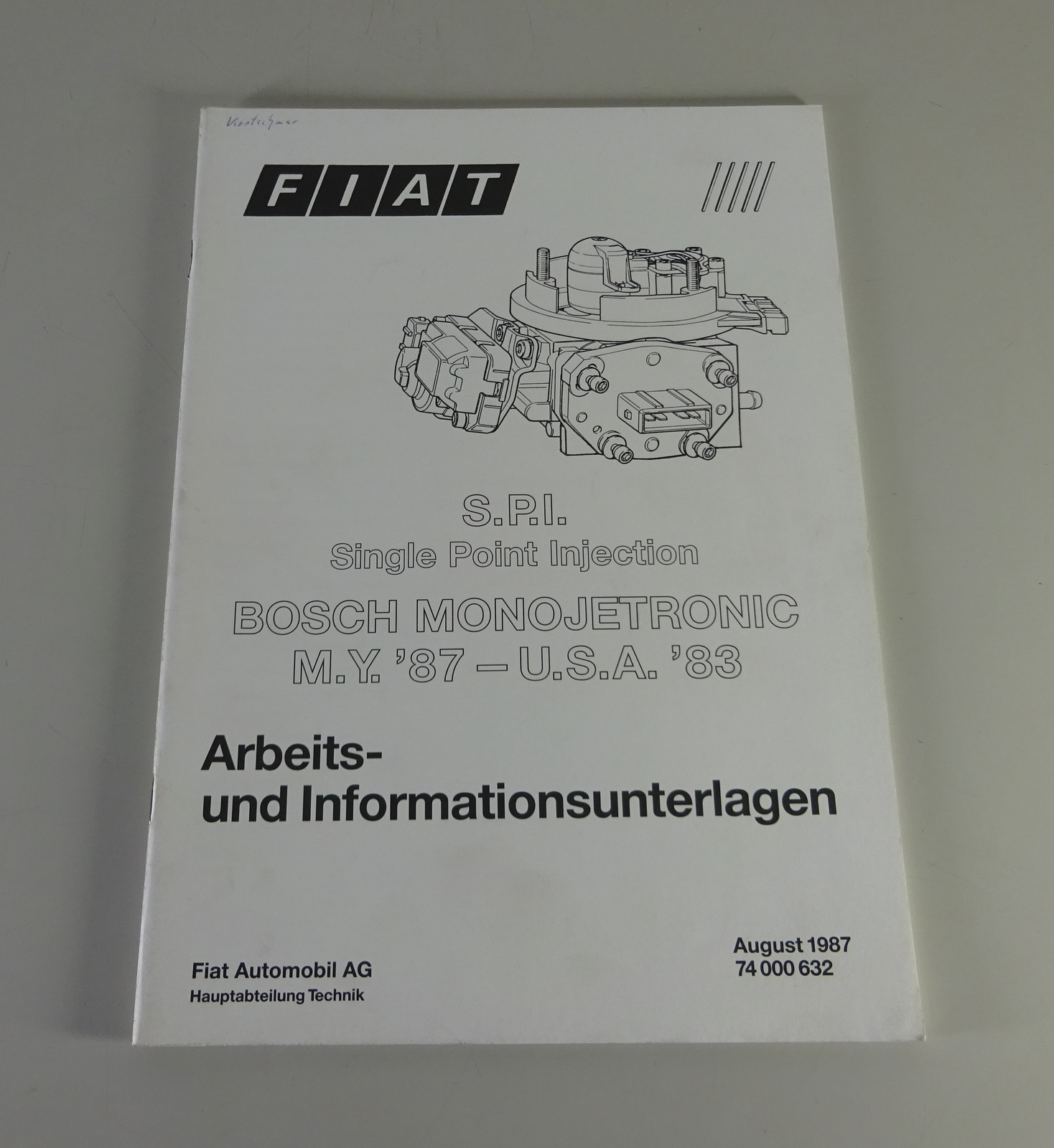 Produktinformationen "Schulungsunterlage Fiat Einspritzanlage S.P.I Bosch Monojetronic von 8/1987"