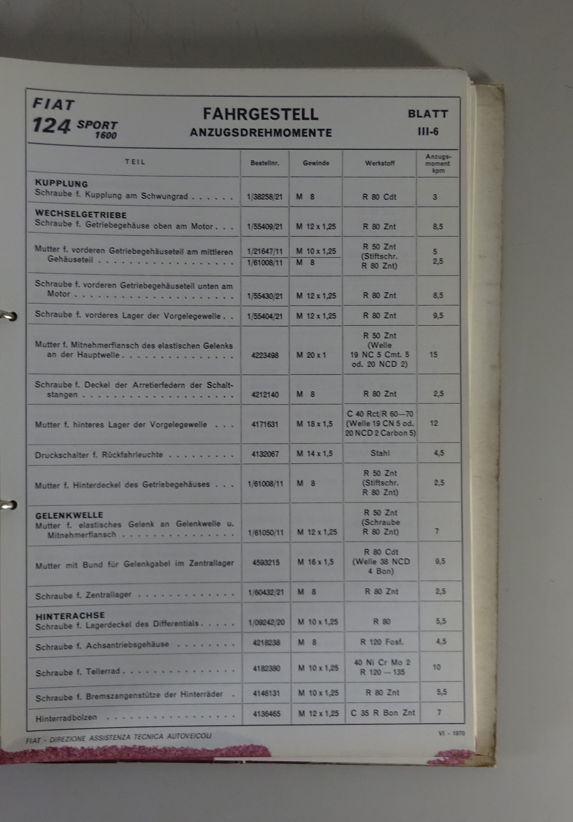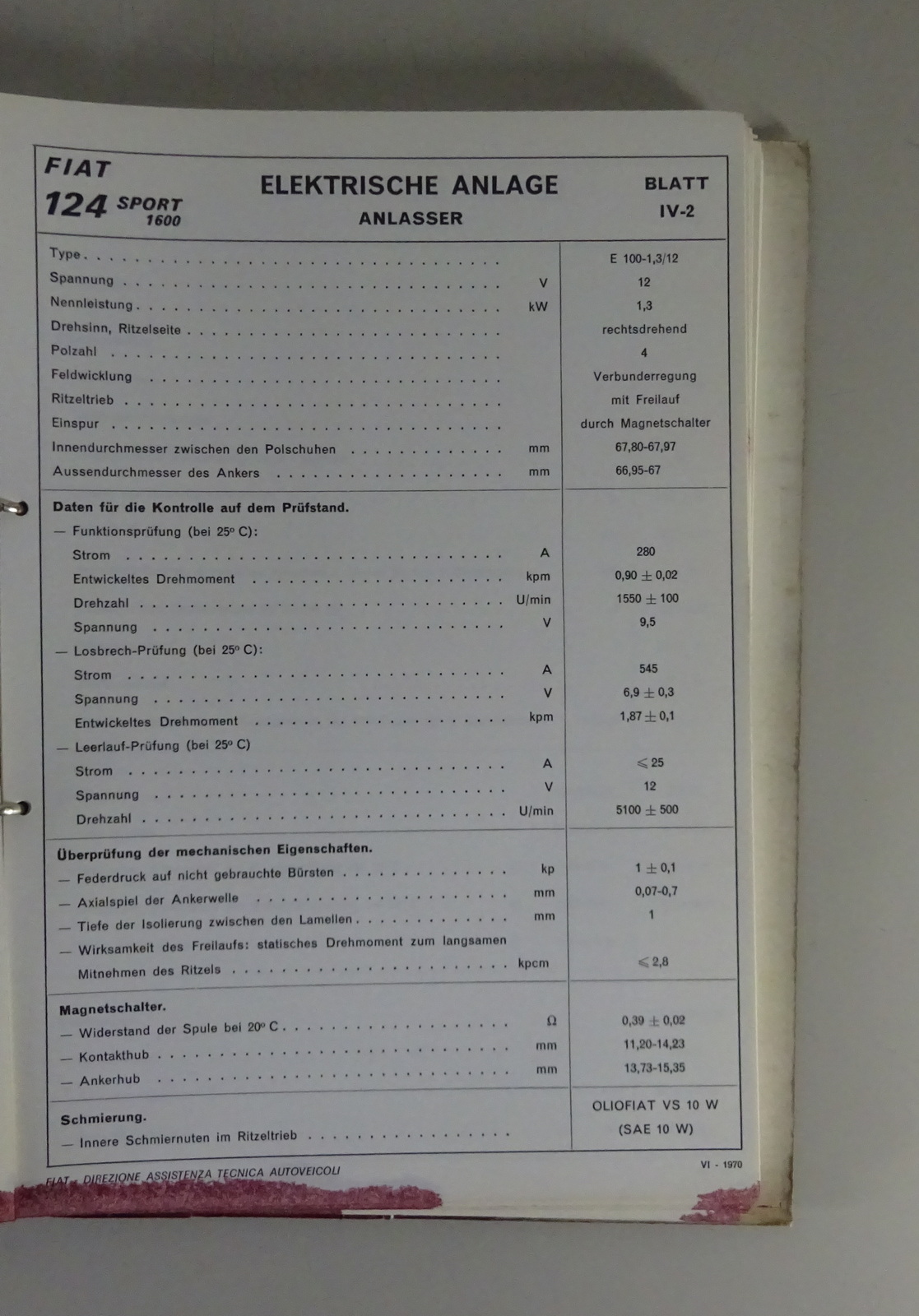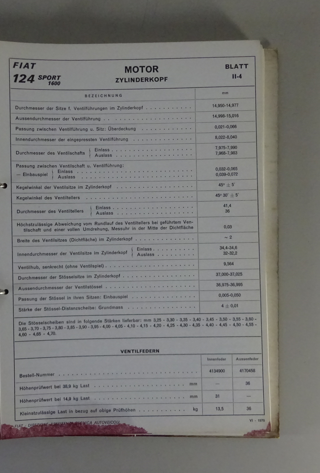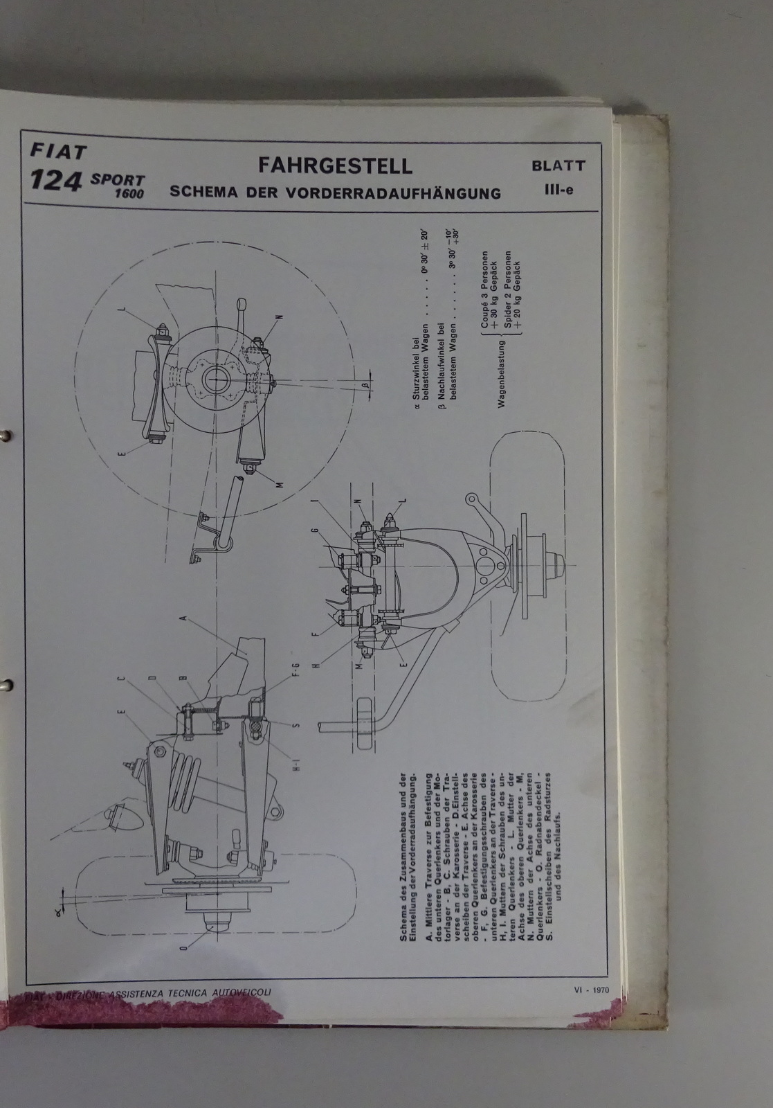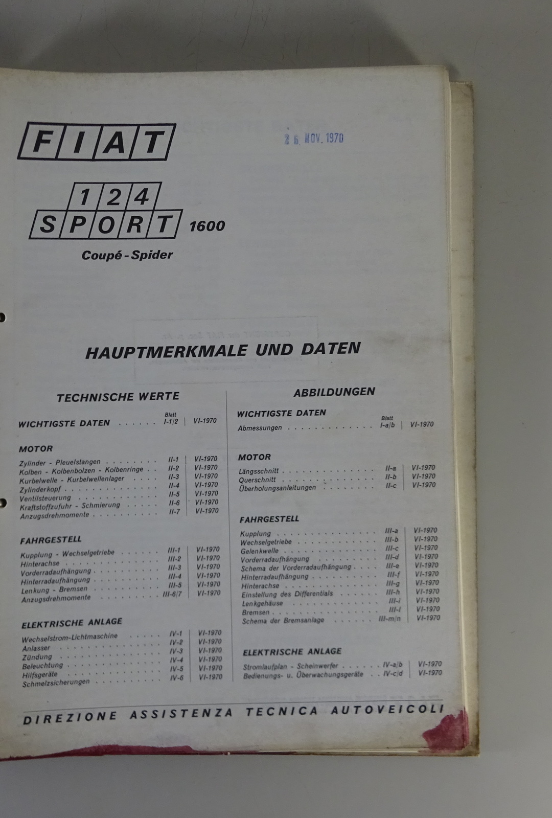 Werkstatthandbuch Hauptmerkmale & Daten Fiat 124 Sport 1600 Coupé & Spider '1970