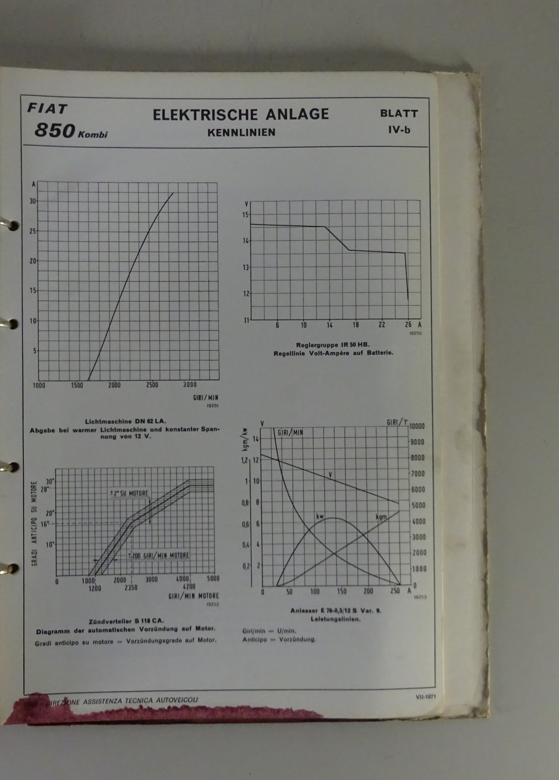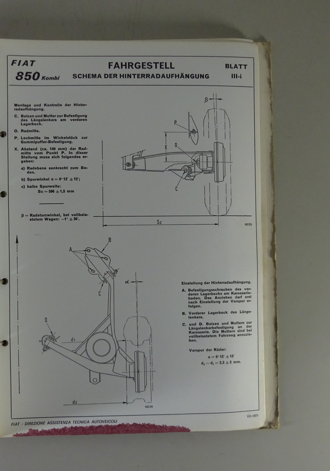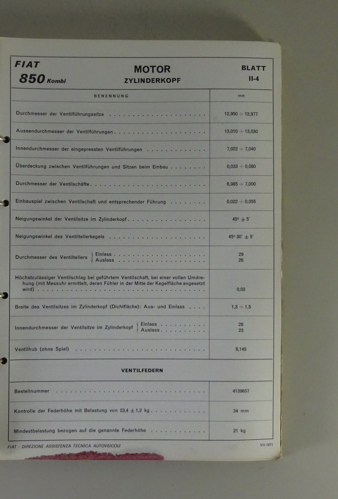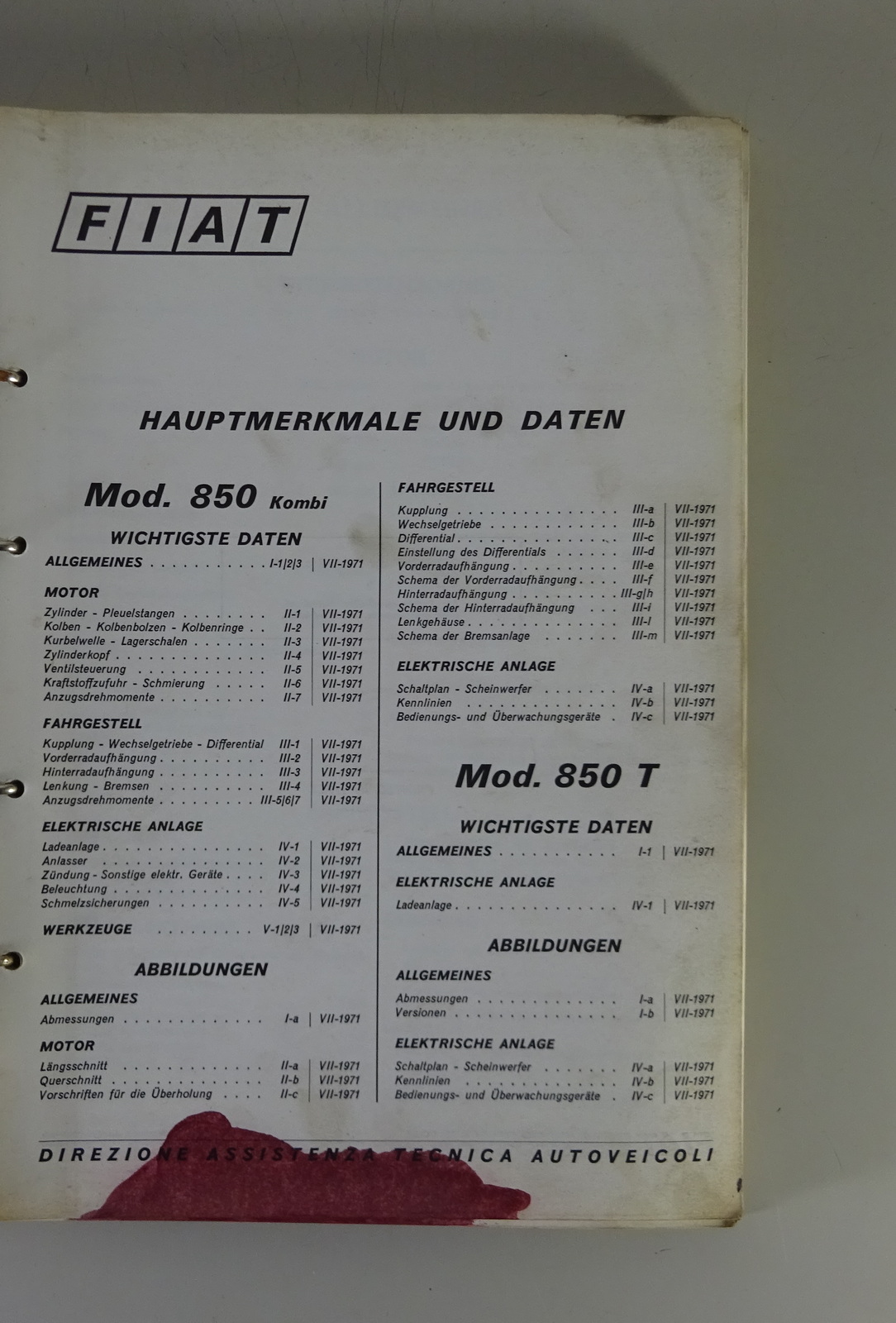 Werkstatthandbuch Hauptmerkmale & Daten Fiat 850 Kombi / 850T Stand 07/1971
