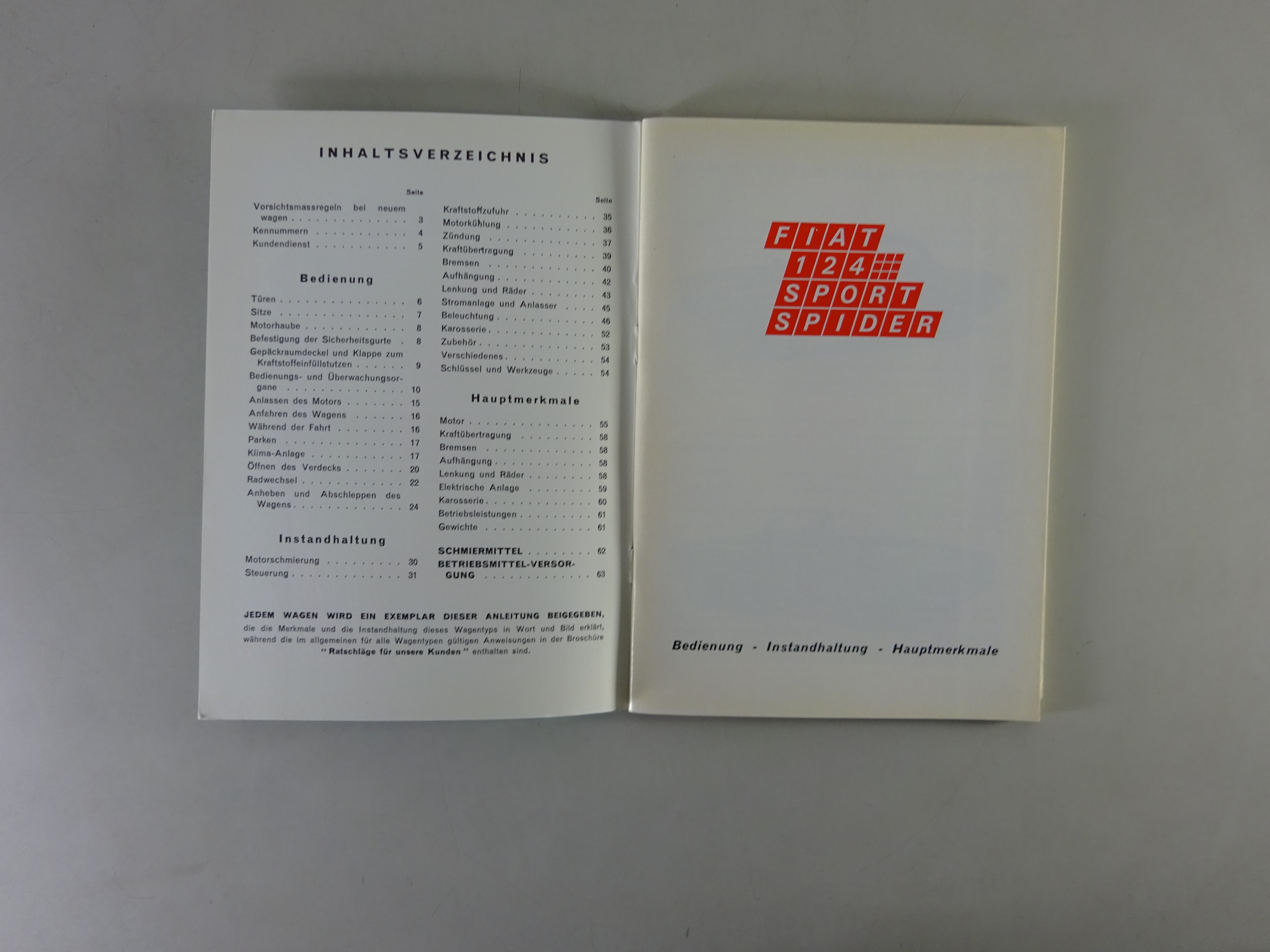 Produktinformationen "Bordmappe + Betriebsanleitung Fiat 124 Sport Spider mit 1438 ccm Stand 09/1968"