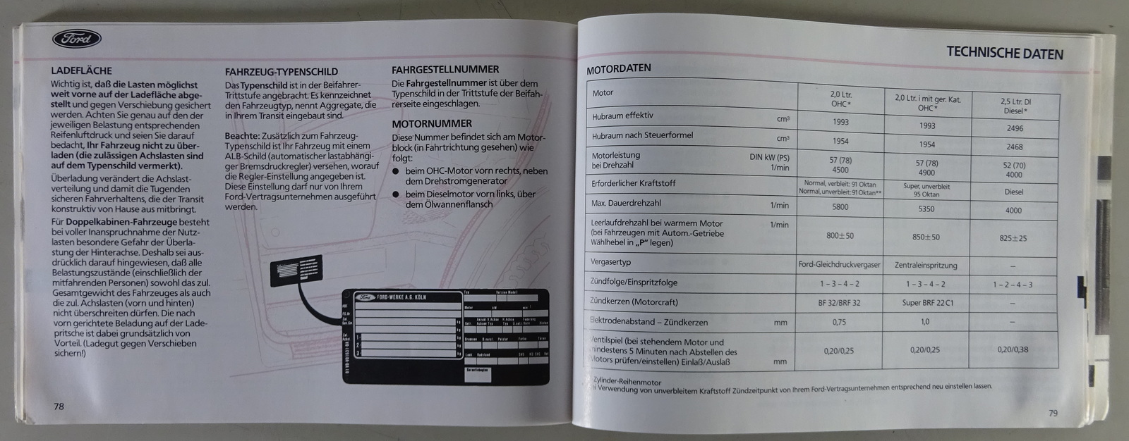 Betriebsanleitung / Handbuch Ford Transit Stand 12/1990