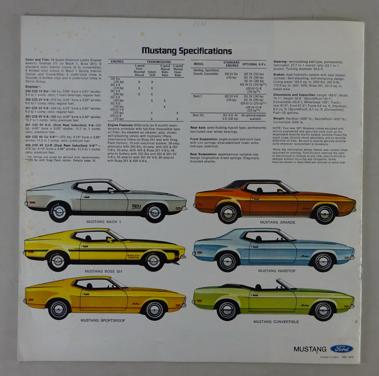 Prospekt / Brochure Ford Mustang I 4. Generation from 08/1970