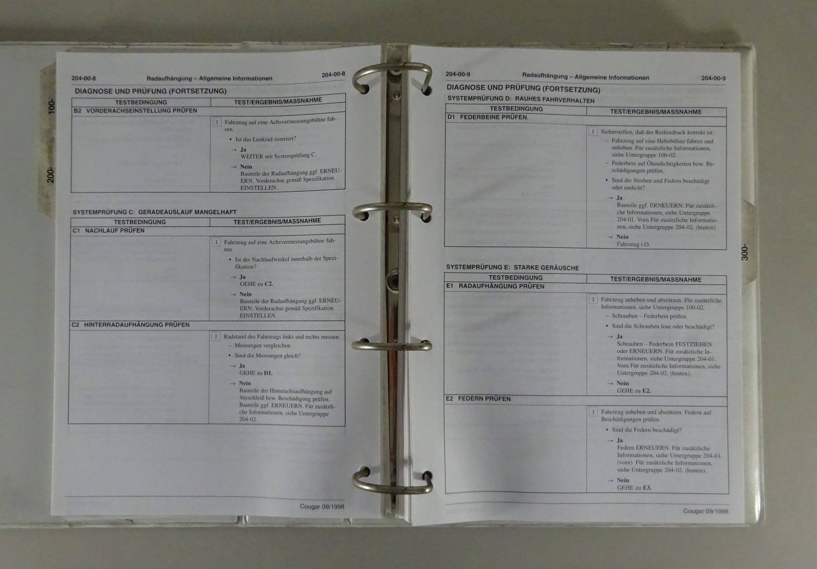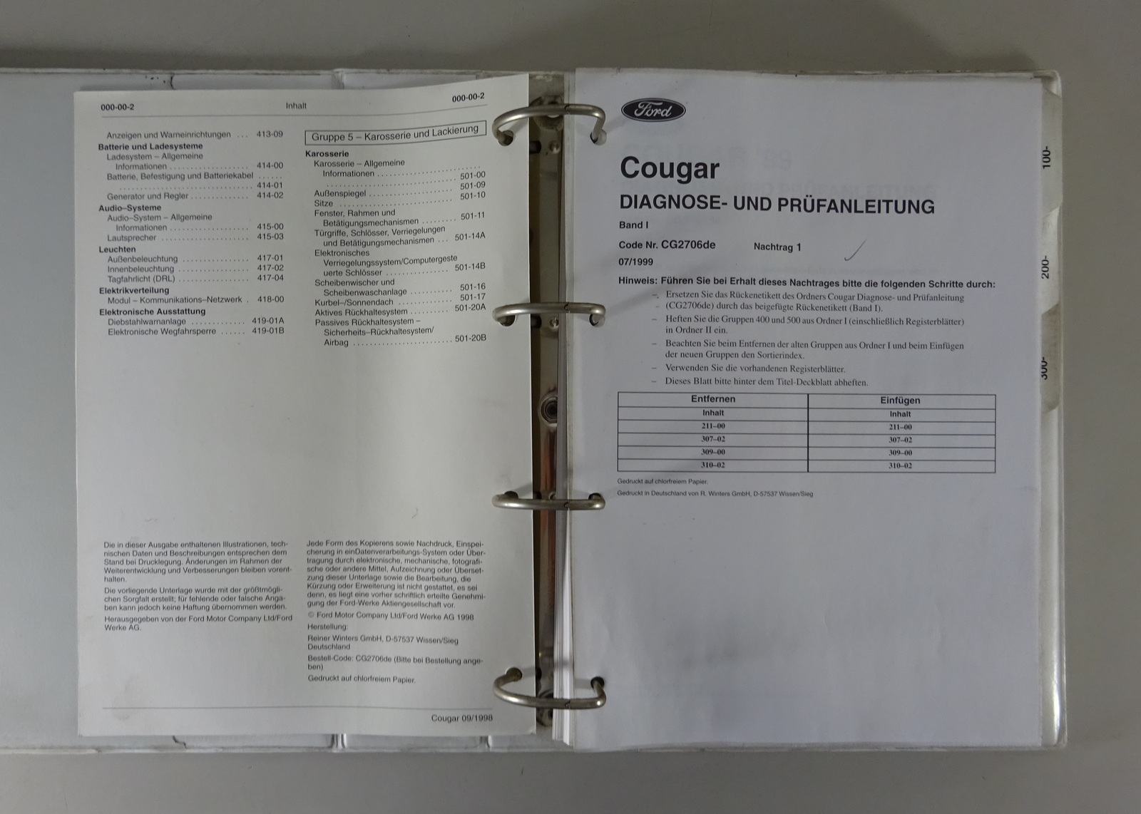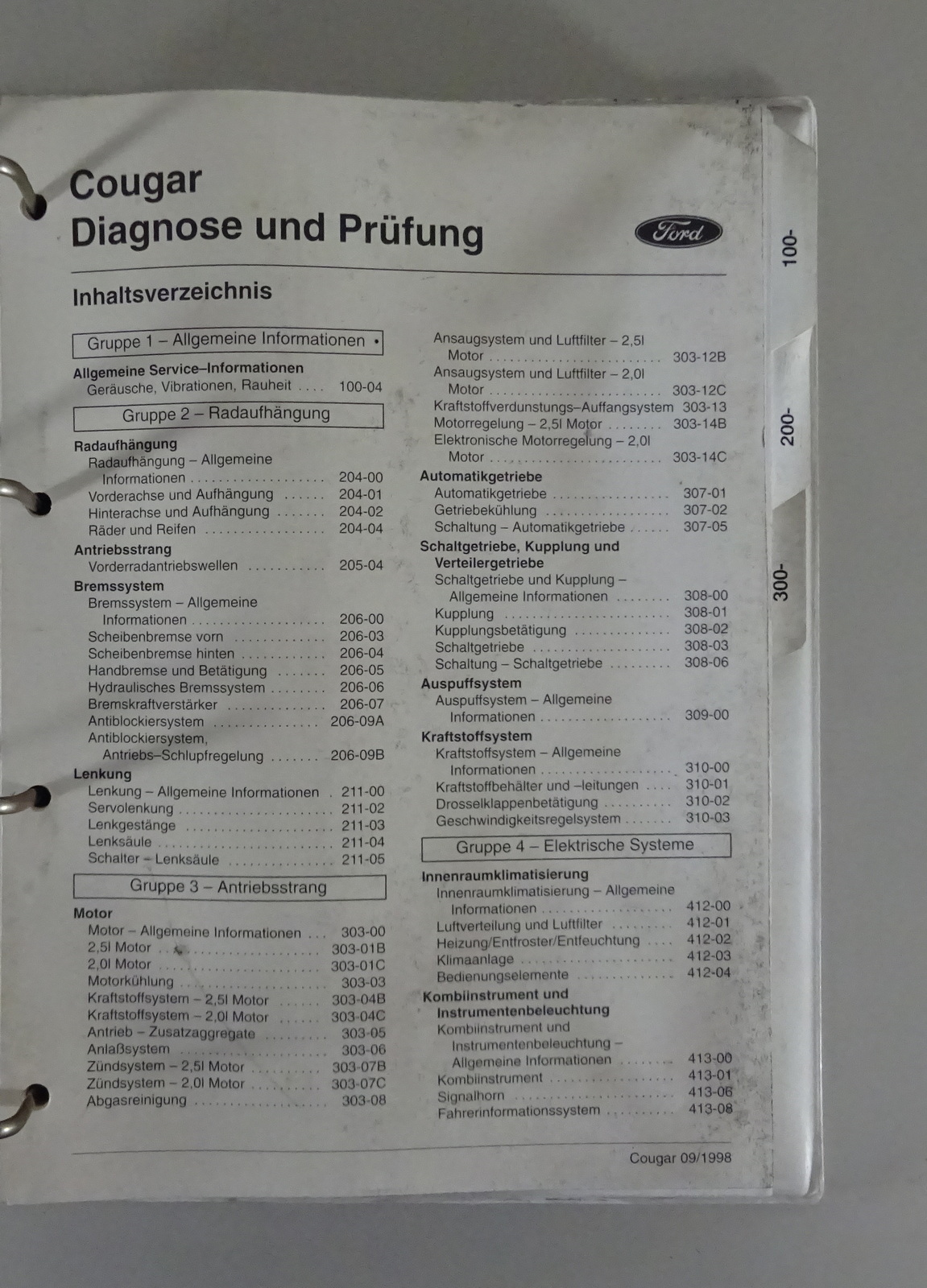 Werkstatthandbuch / Diagnosehandbuch Ford Cougar '99 Band I + II Stand 09/1998