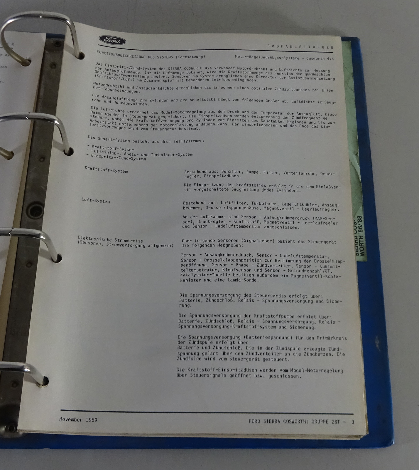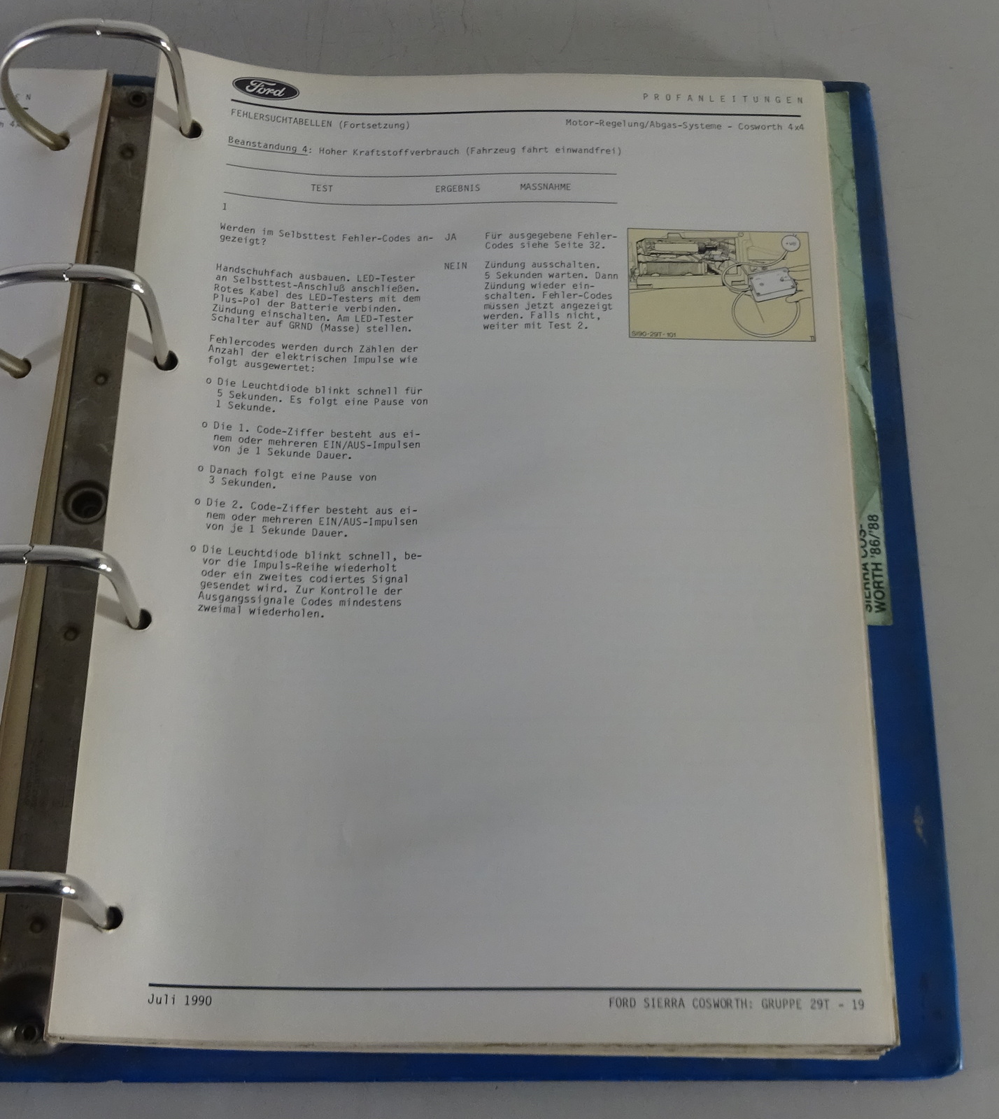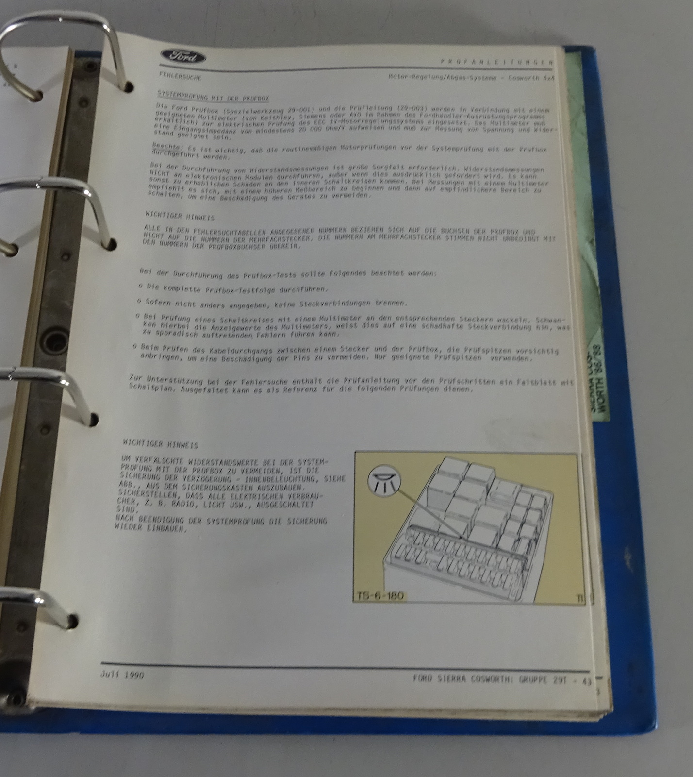 Werkstatthandbuch Prüfanleitung Ford Sierra RS Cosworth Stand 1990