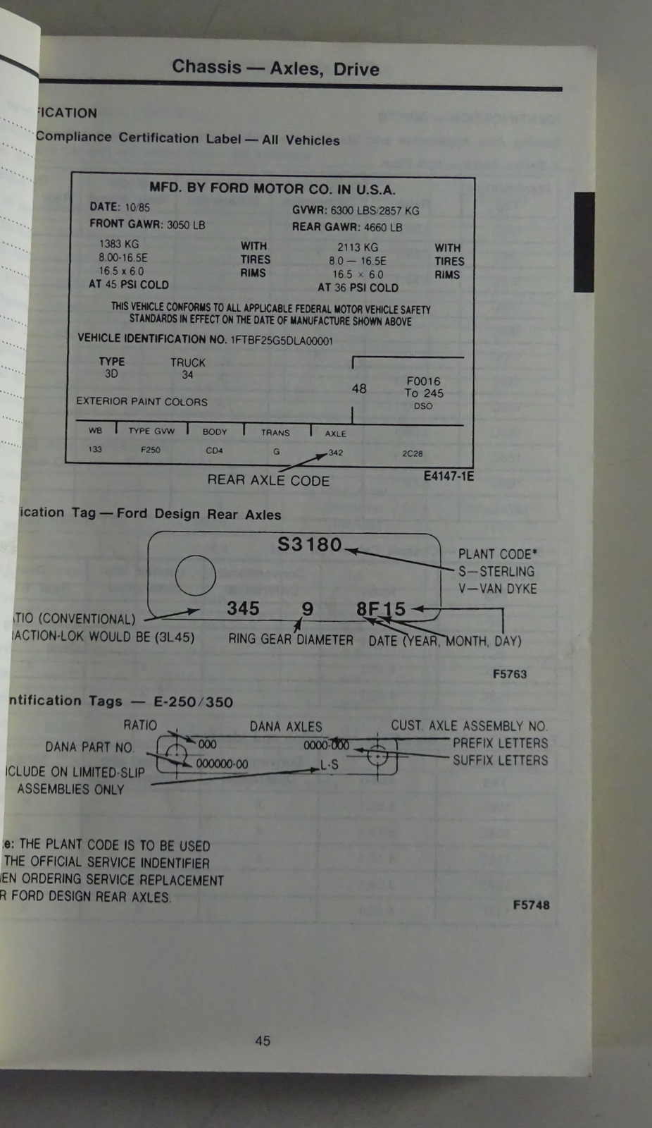Tabellenbuch Ford Econoline / Club Wagon / Bronco / F150 - F350 Mj. 1988