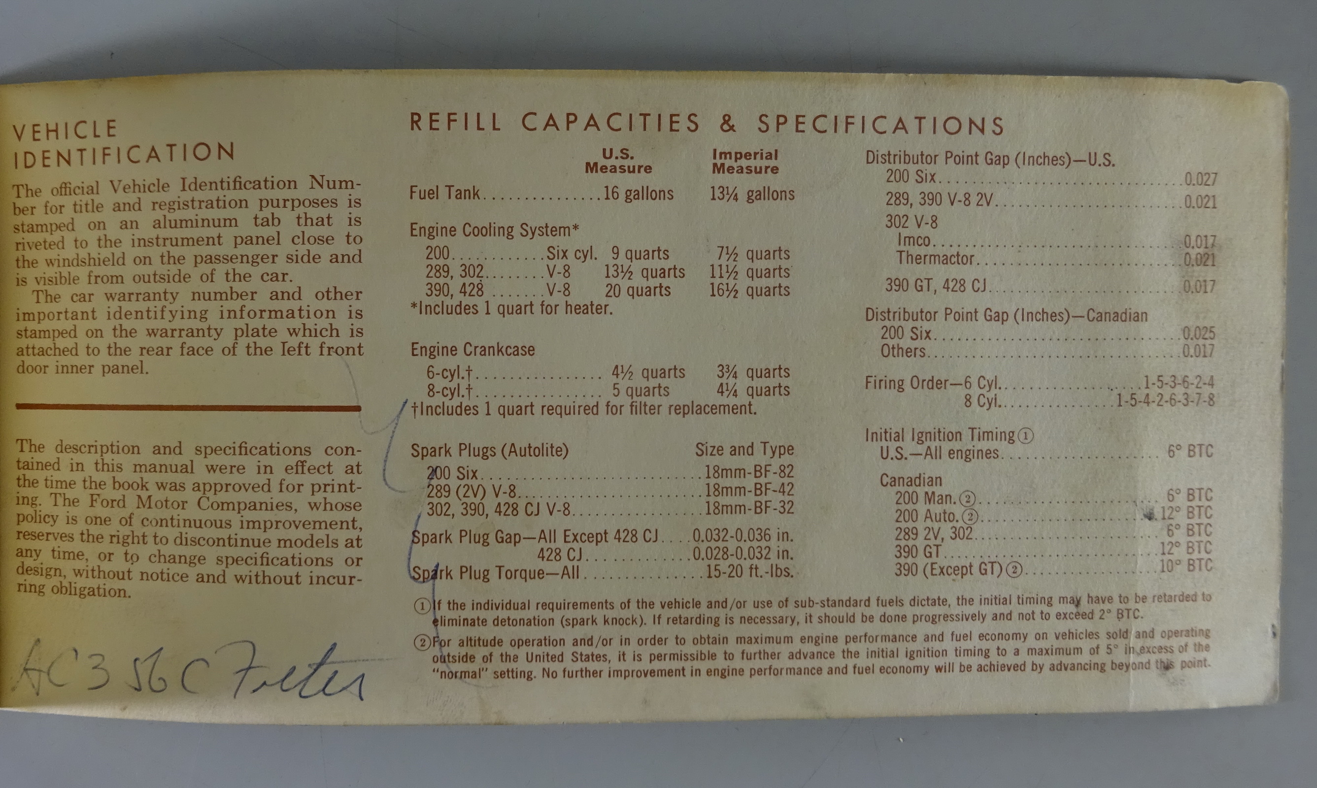 Betriebsanleitung / Manual Ford Mustang incl. Fastback + Cabrio Modelljahr 1968