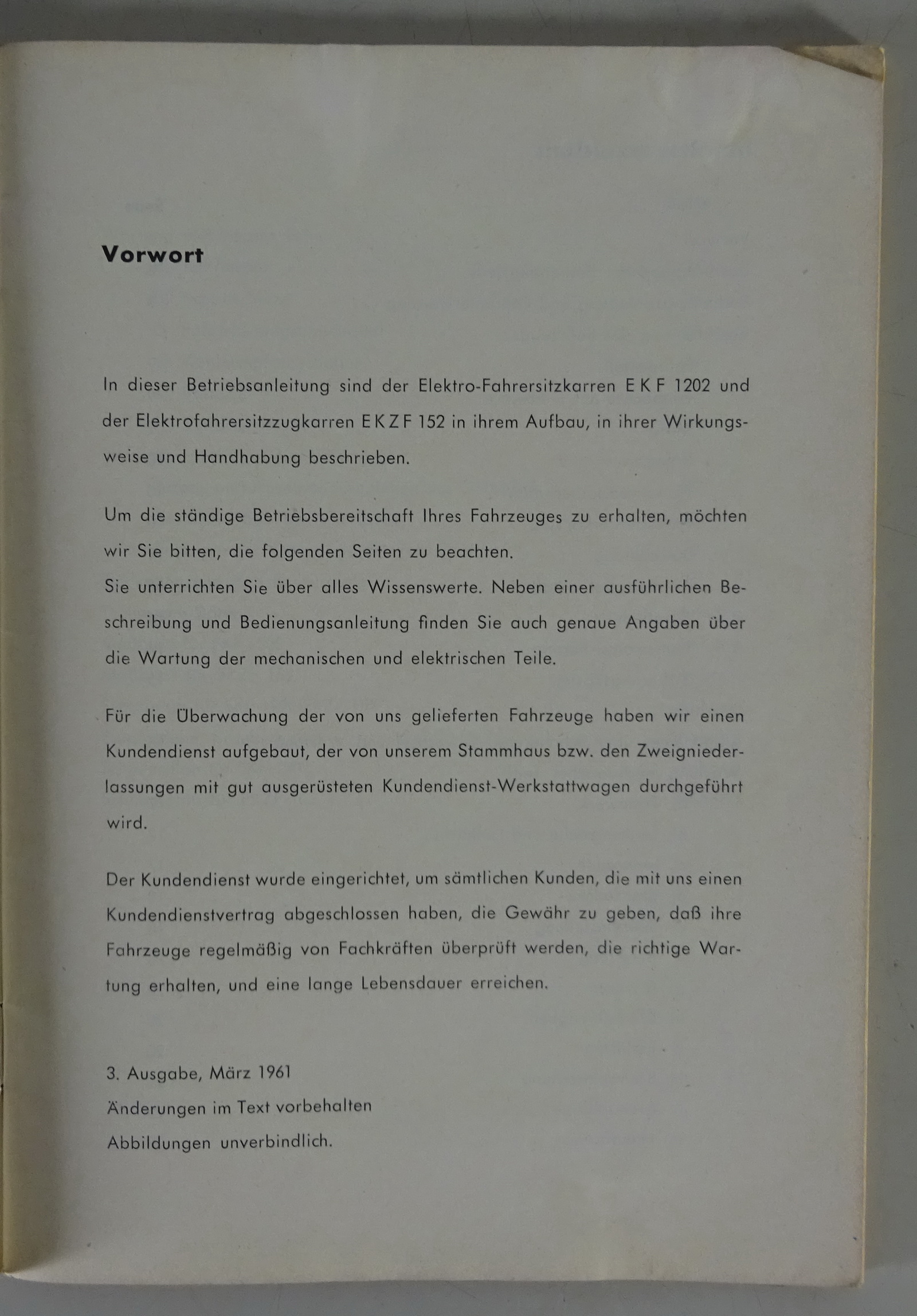 Betriebsanleitung Still Muli EKF 1202 / EKF 152 Elektrokarren Stand 03/1961