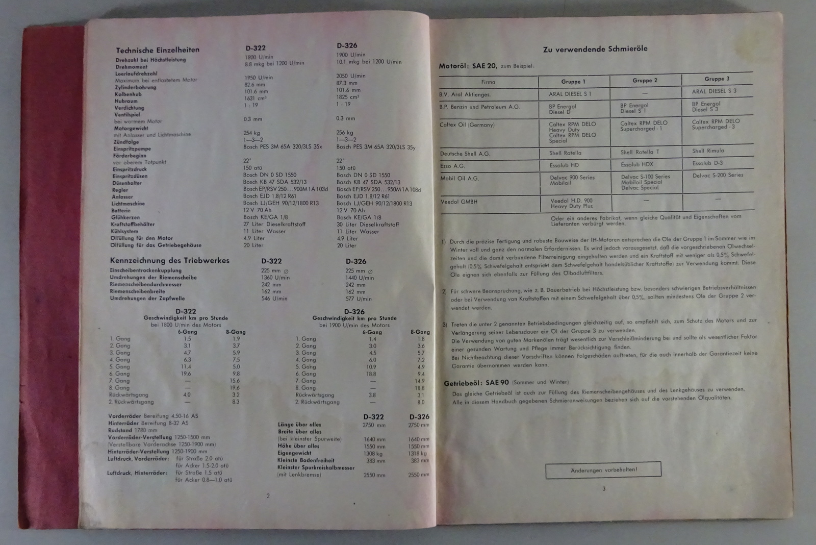 Betriebsanleitung / Handbuch Mc Cormick Dieselschlepper D-322 / D-326 Stand 3/62
