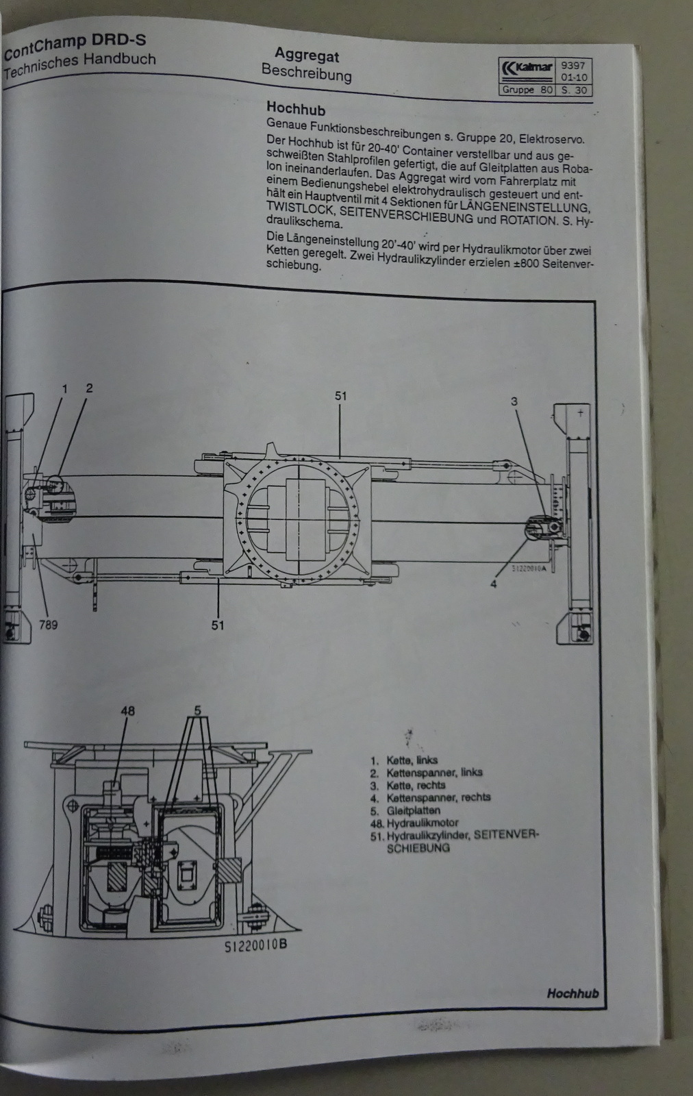 Technisches Handbuch Ergänzung für Kalmar KDU Hochhub DRD 420-450 Stand 10/2001