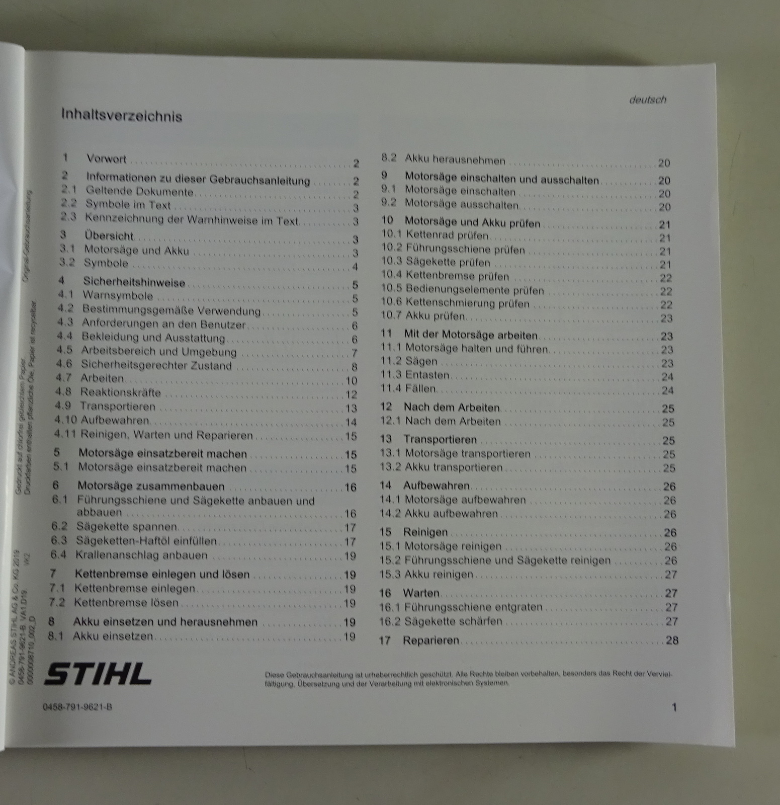 Betriebsanleitung / Handbuch original Stihl Stihl Motorsäge MSA 161 T... mehr