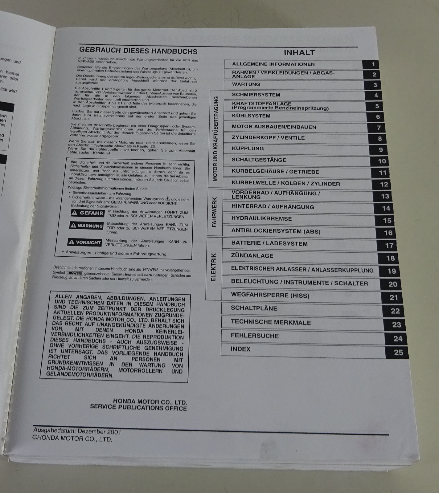 Werkstatthandbuch Honda VFR 800 VTEC V4 / VFR-ABS Typ RC46 ab Baujahr 2001