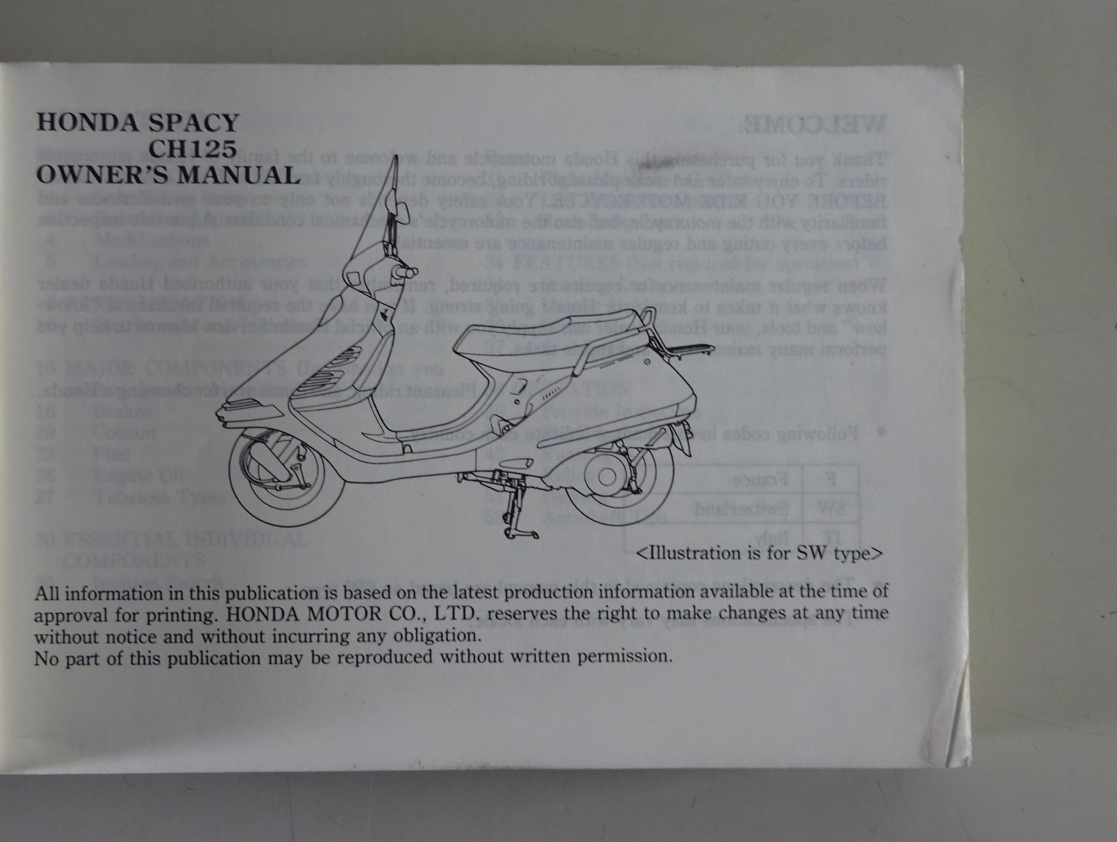 Betriebsanleitung / Owner´s Manual Honda CH 125 Roller Stand 1992