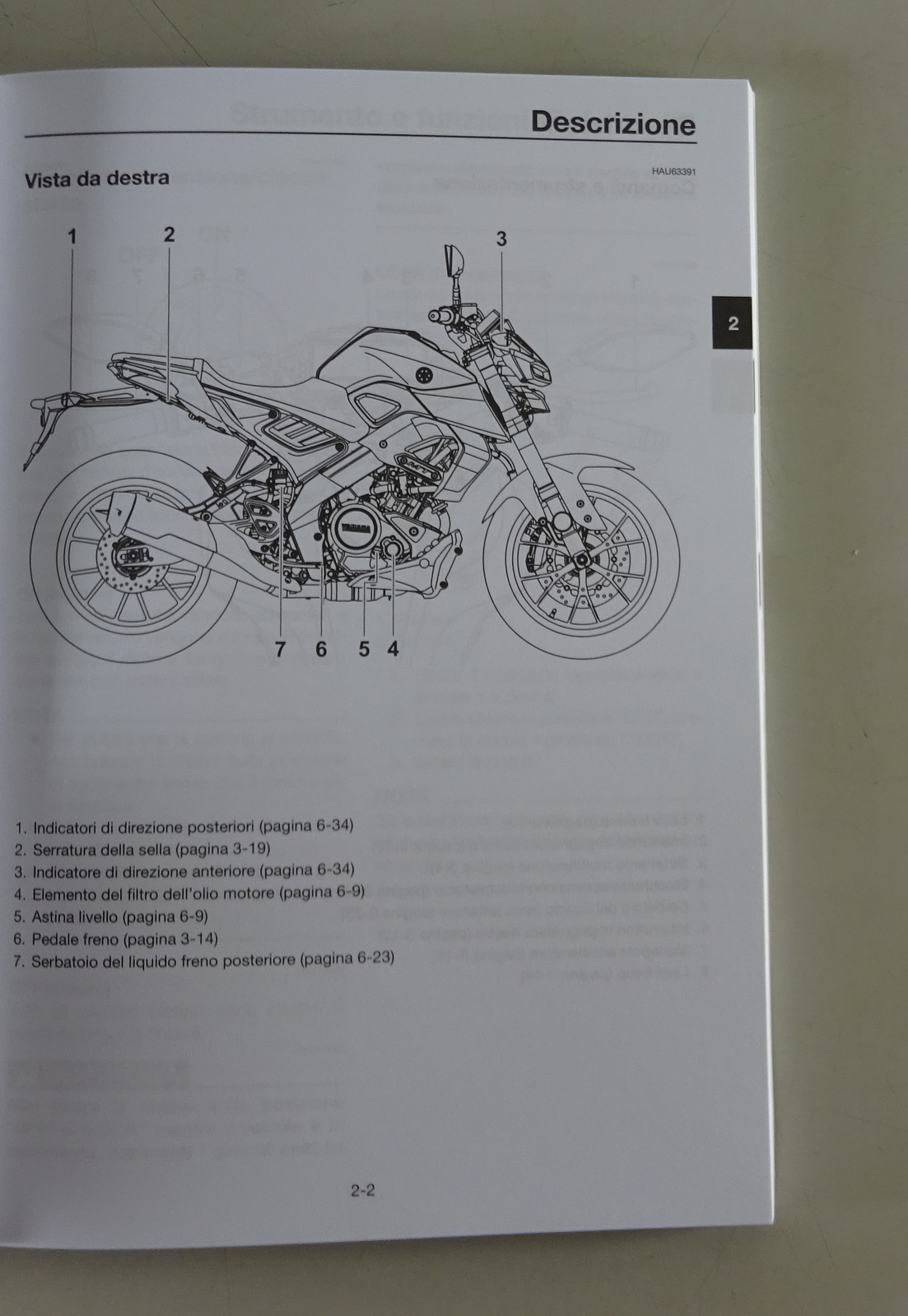 Uso e Manutenzione Yamaha MT-125 from 09/2019