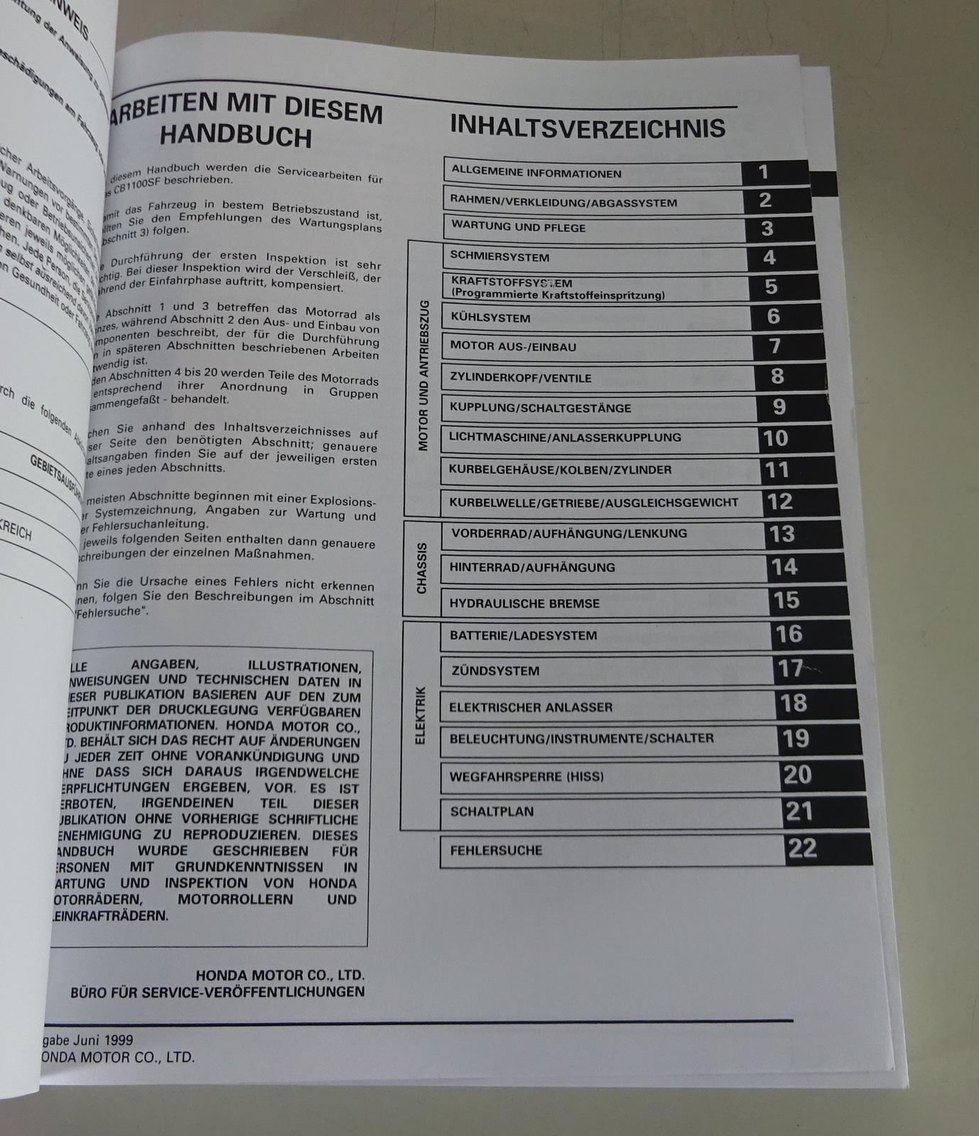 Werkstatthandbuch Honda CB 1100 SF X-M X-Eleven Typ SC42 Stand 1999