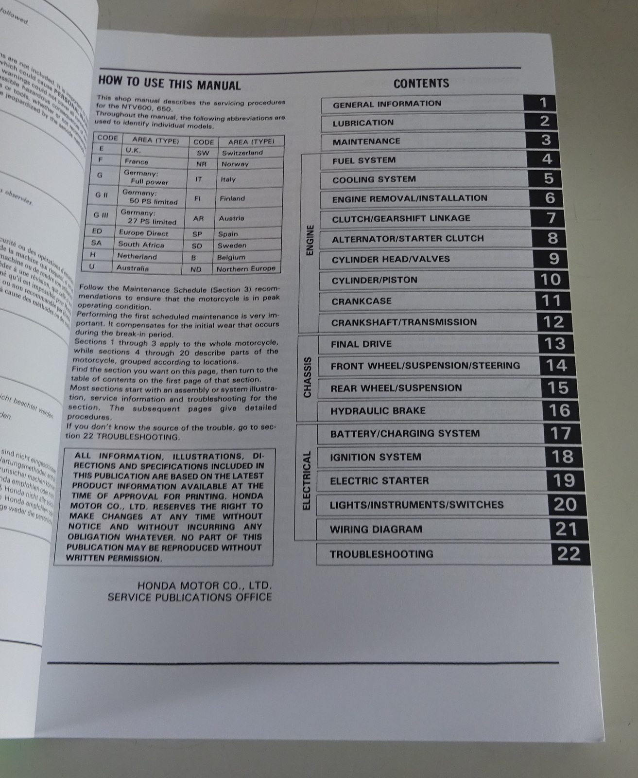 Werkstatthandbuch / Workshop Manual Honda Revere NTV 600 / 650 Stand 1988
