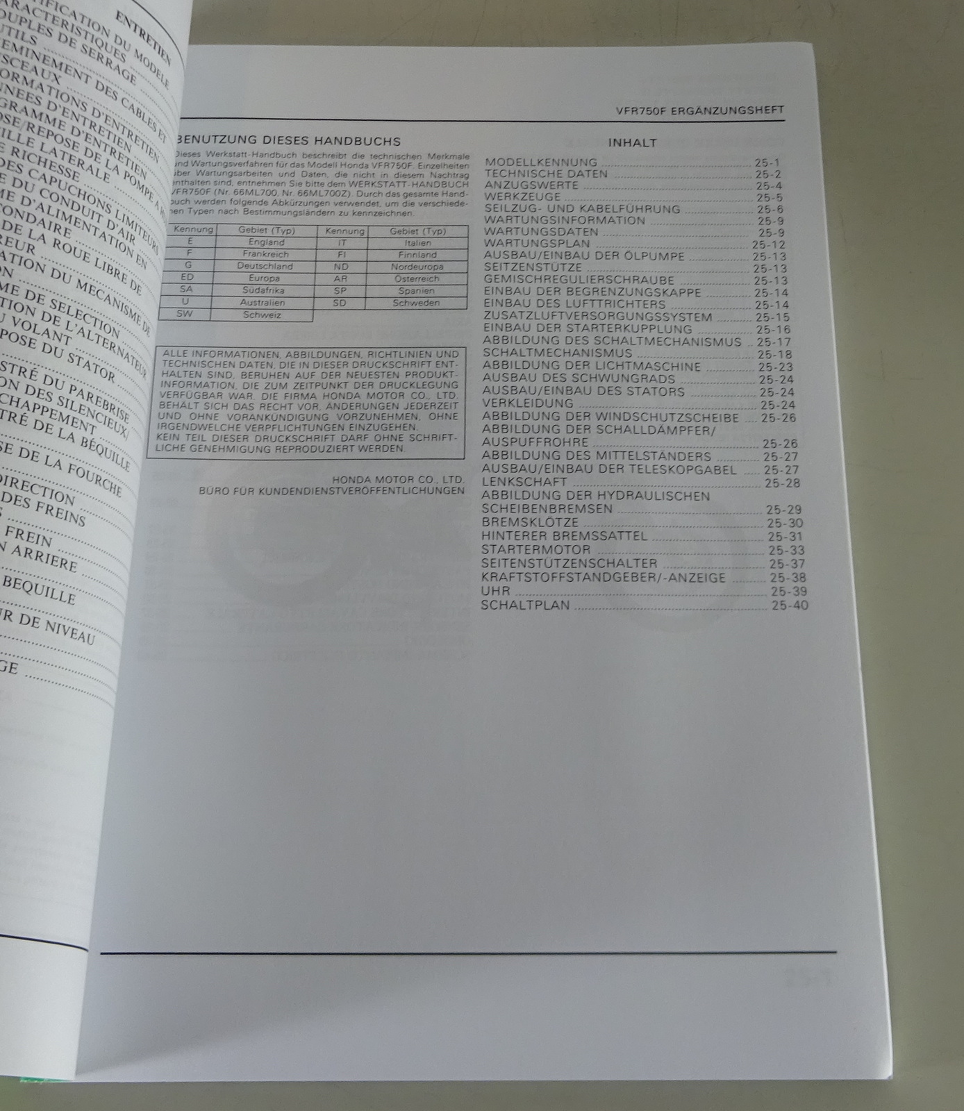Werkstatthandbuch Nachtrag / Workshop manual supplement Honda VFR 750 F von 1988