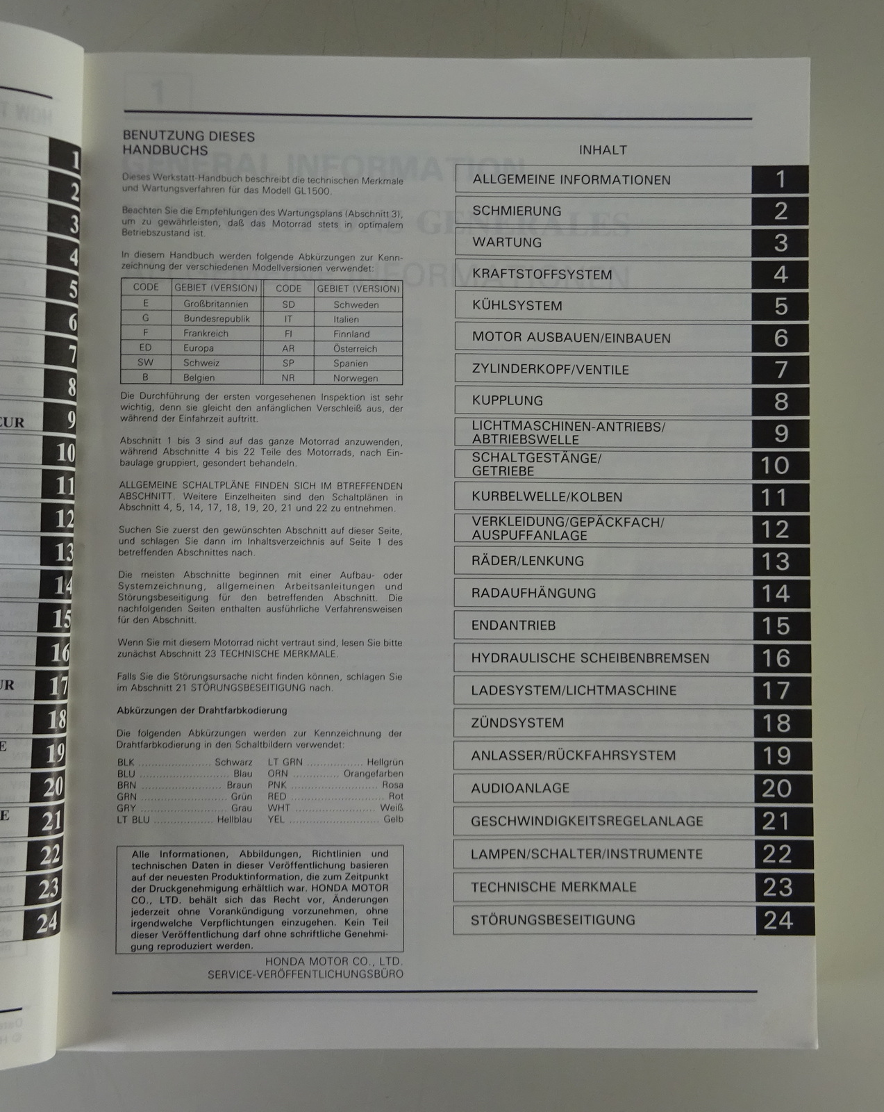 Werkstatthandbuch / Shop Manual Honda Goldwing GL 1500/1500 A / SE Stand ab 1988