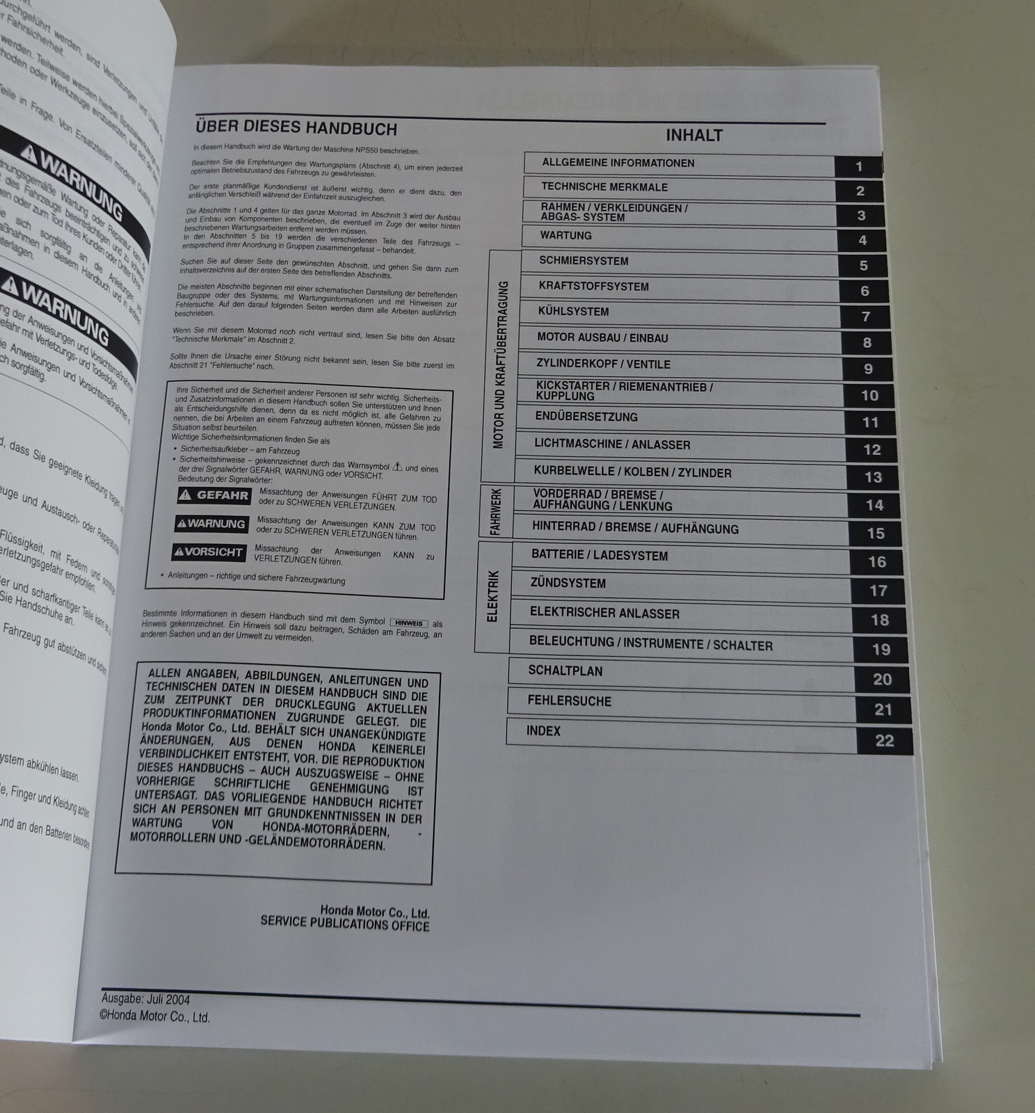 Produktinformationen "Werkstatthandbuch Honda Roller NPS 50 Zoomer Stand 07/2004"