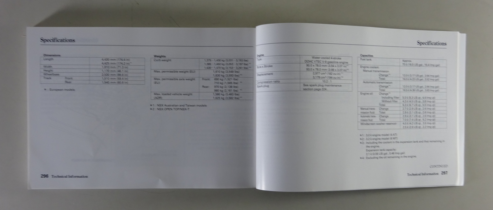 Bordmappe + Betriebsanleitung | Honda NSX Typ NA2 3,0 + 3,2 l Facelift | 10/2003