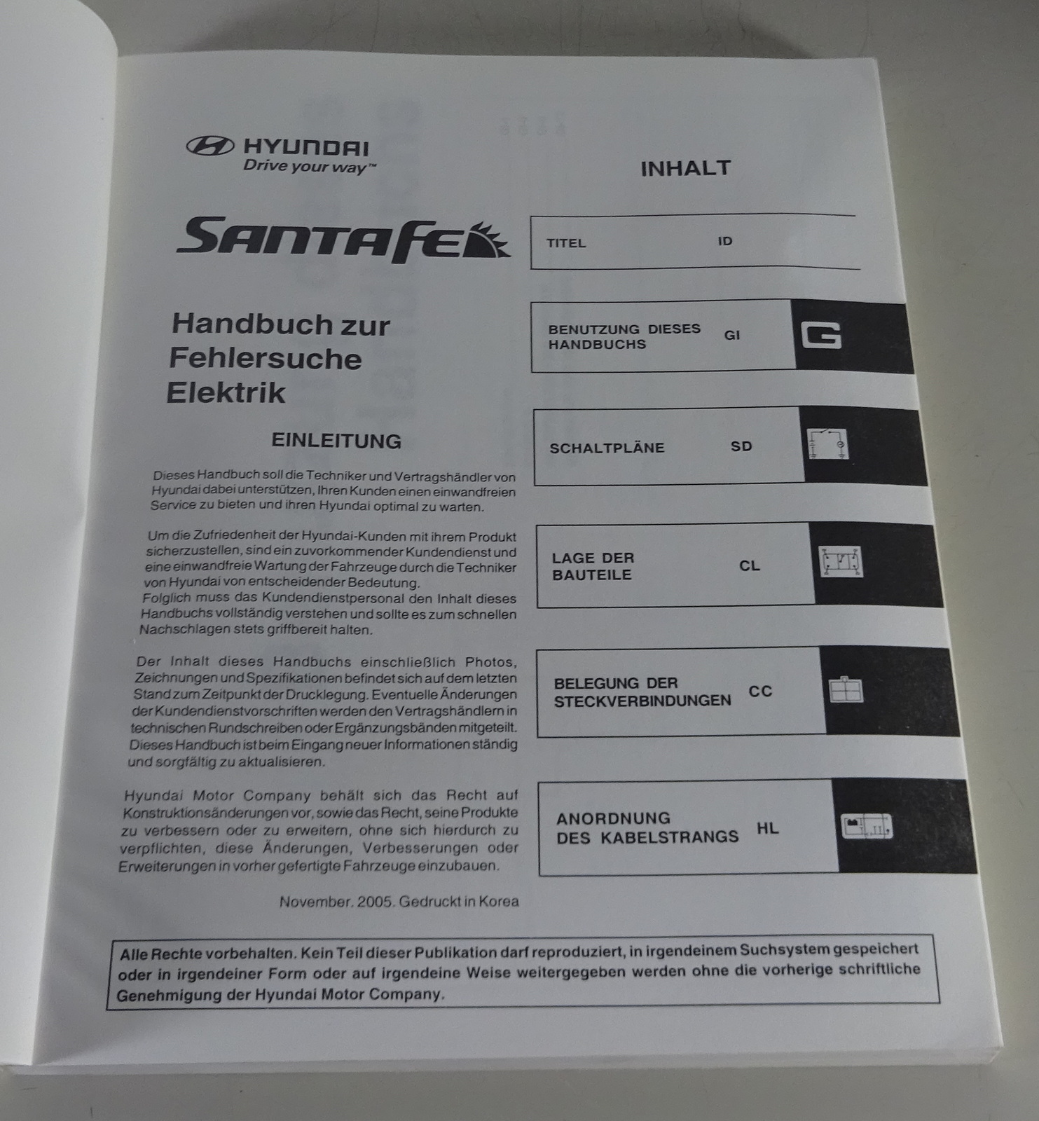 Werkstatthandbuch / Elektrik Schaltpläne Hyundai Santa Fe Typ SM ab Baujahr 2006