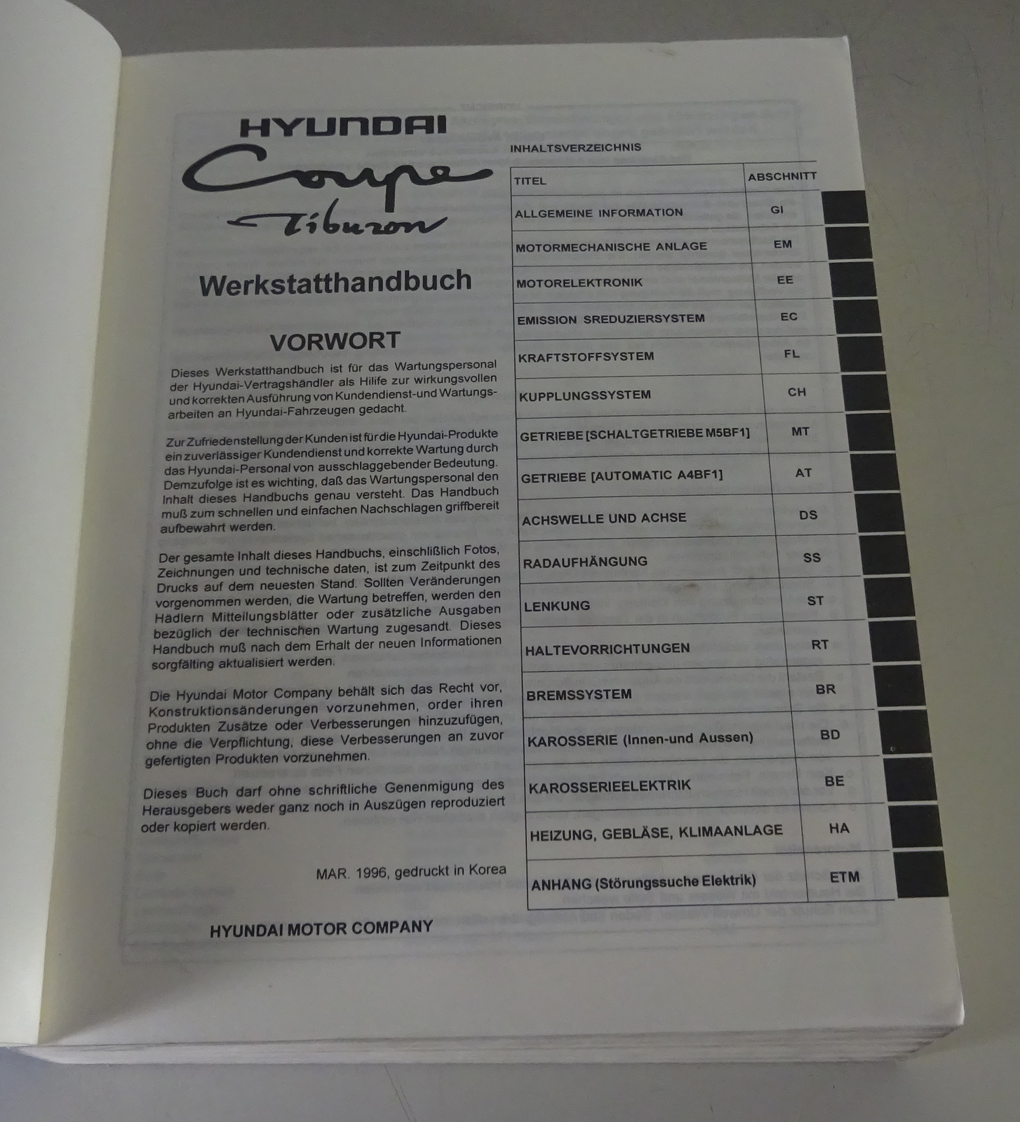 Werkstatthandbuch / Grundhandbuch Hyundai Coupé Coupe Typ J2, 1996-1997