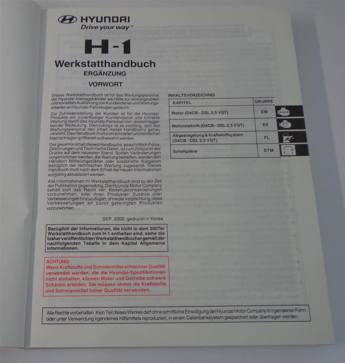 Werkstatthandbuch 2007 Nachtrag / Ergänzung Hyundai Hyundai H-1 ( 2007 )... mehr
