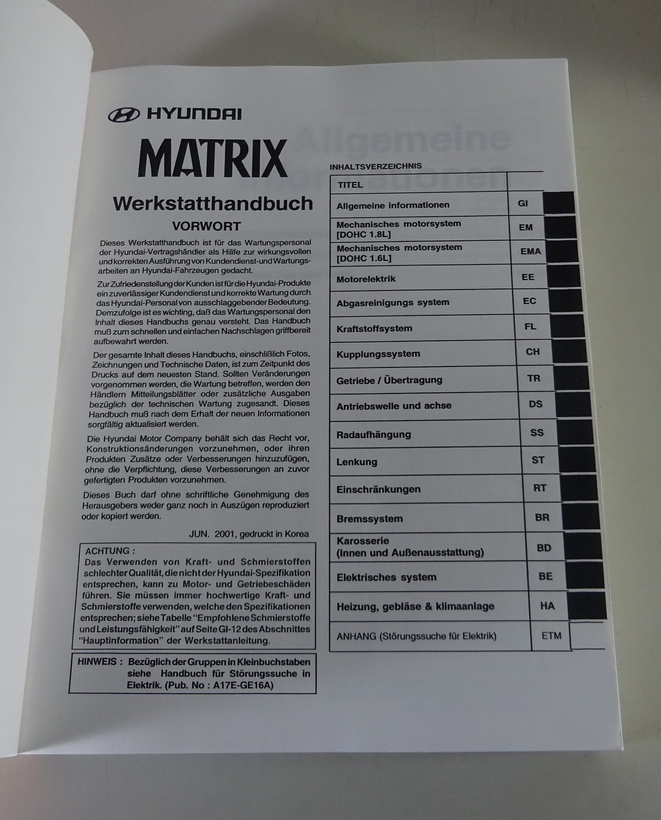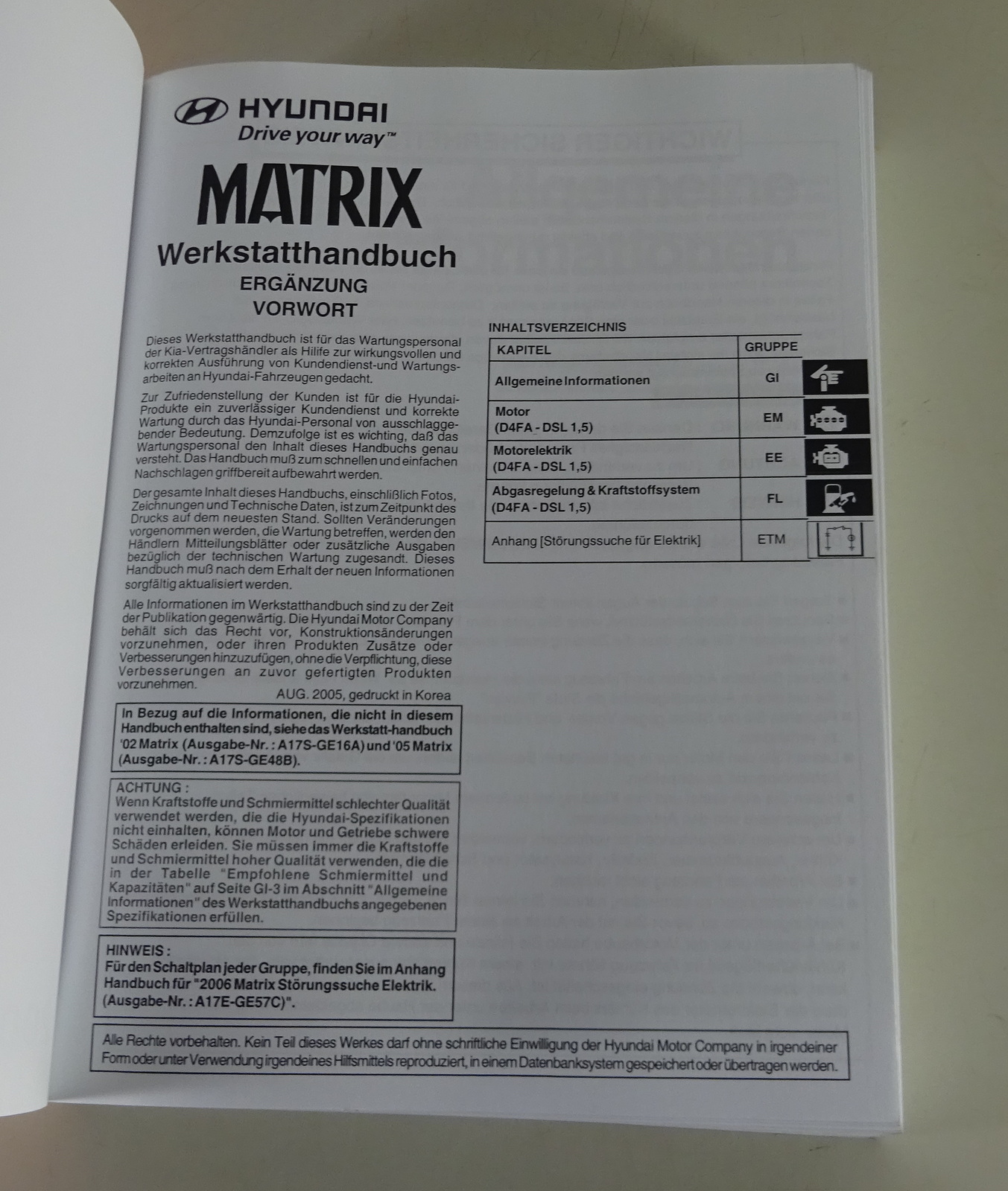Werkstatthandbuch Konvolut Hyundai Matrix Typ FC Baujahr 2001 - 2005
