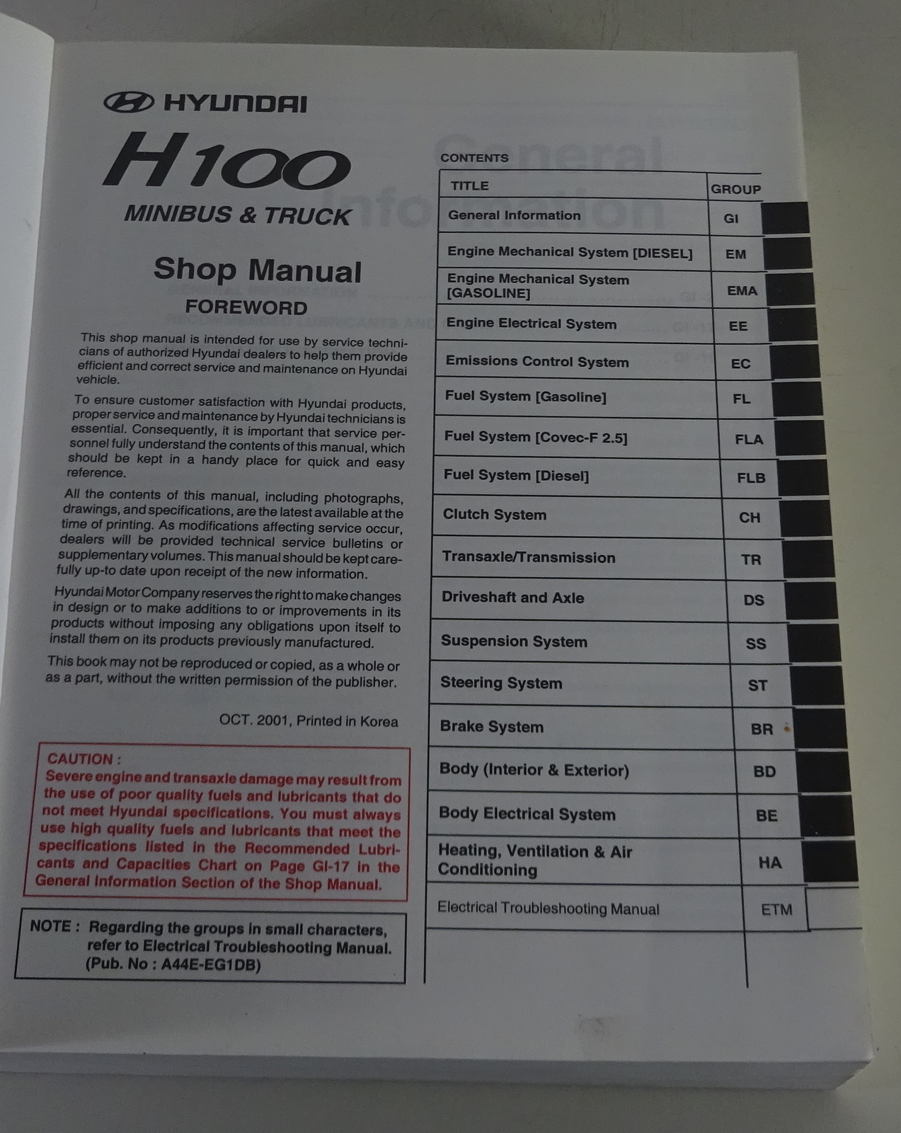 Werkstatthandbuch / Workshop Manual Hyundai H - 100 H-100 / Minibus / Truck H-1