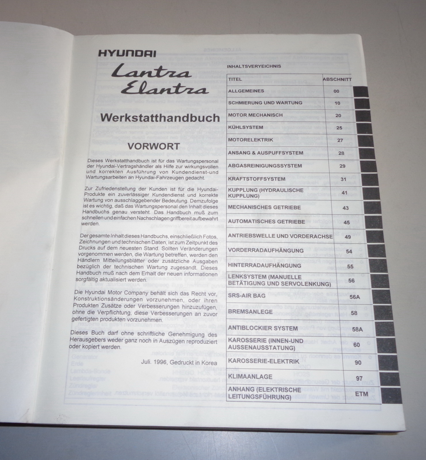 Werkstatthandbuch Reparaturanleitung Hyundai Lantra / Elantra (Modell 1997)