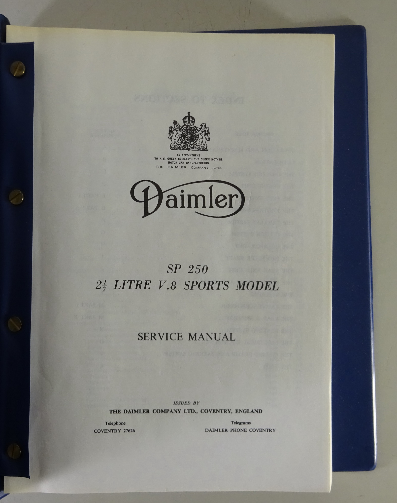 Werkstatthandbuch / Service Manual Daimler SP 250 V8 2,5 Liter Sport 1959 - 1964