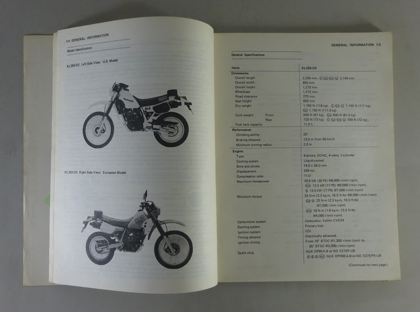 Werkstatthandbuch / Service Manual / Supplement Kawasaki KLR 250 Stand 08/1984