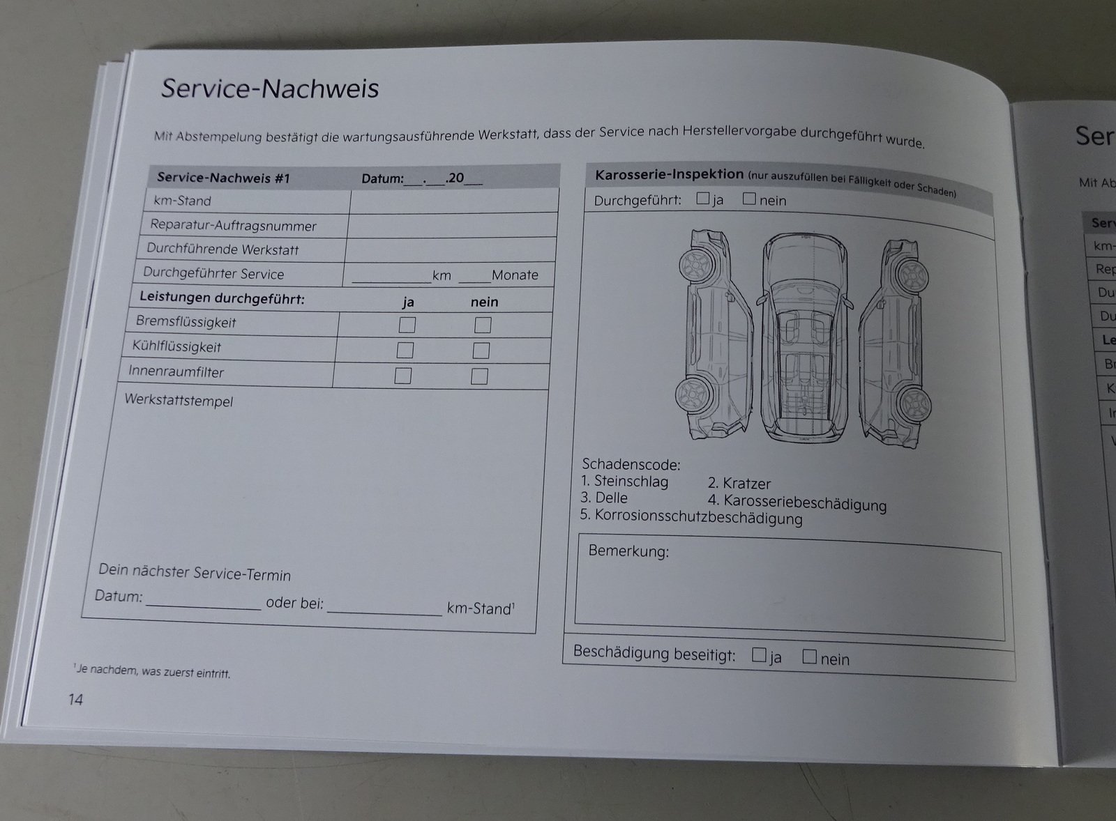 ohne Einträge oder Stempel im Servicebereich