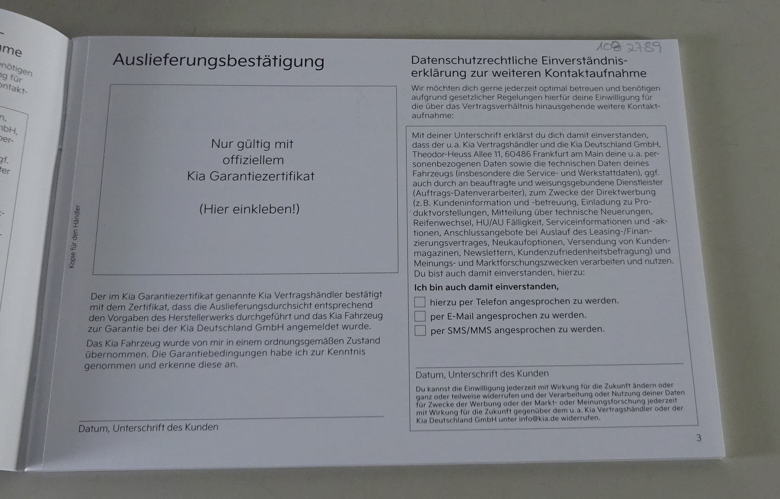 Scheckheft / Serviceheft & Garantie blanko original Kia