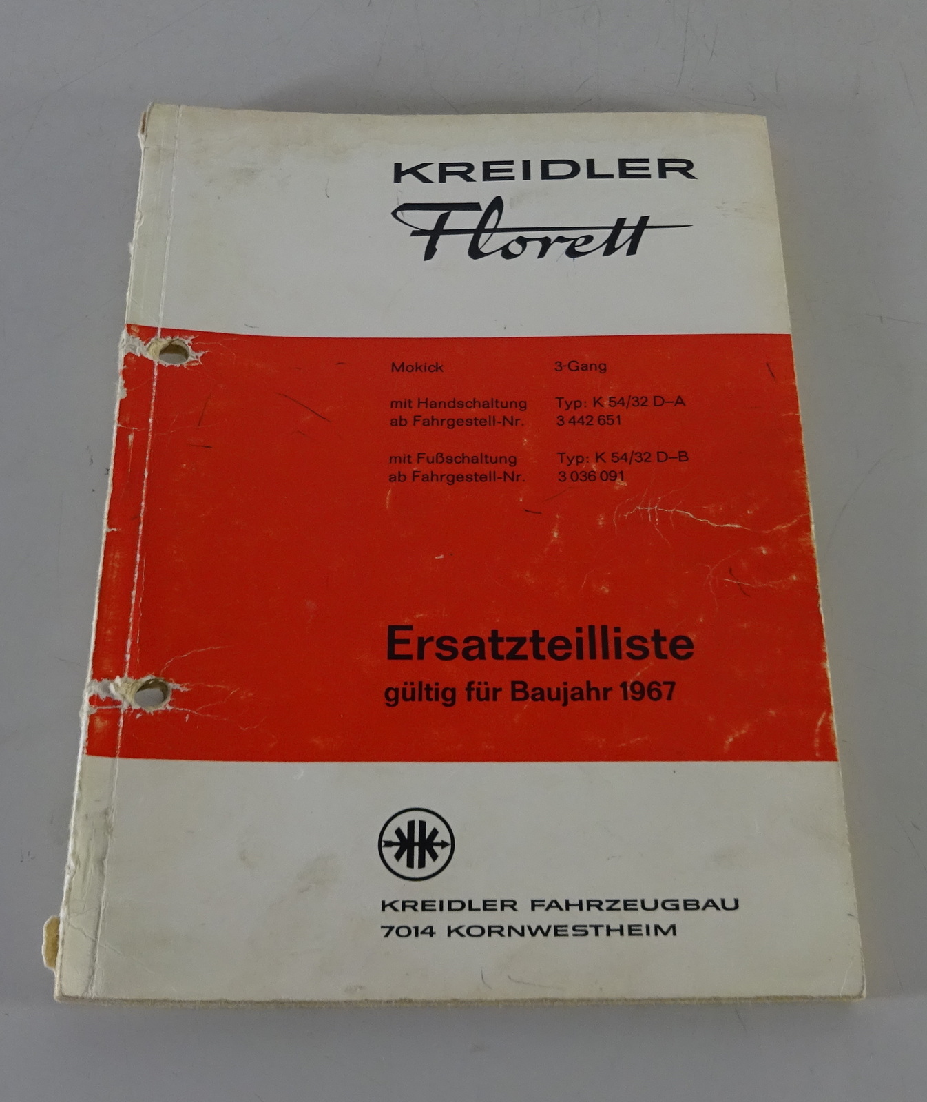 Teilekatalog / Ersatzteilliste Kreidler Florett Mokick 3 Gang K54/32 D-A Bj 1967