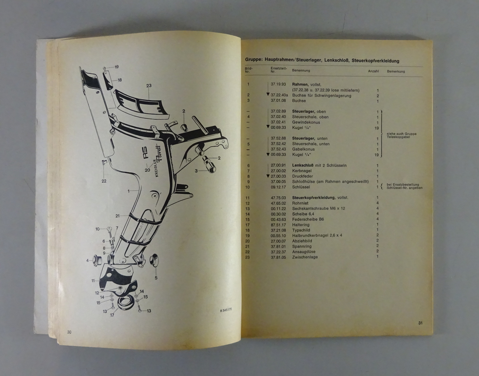 Teilekatalog / Ersatzteilliste Kreidler Florett Motorrad RS Typ K 54/53 von 1969