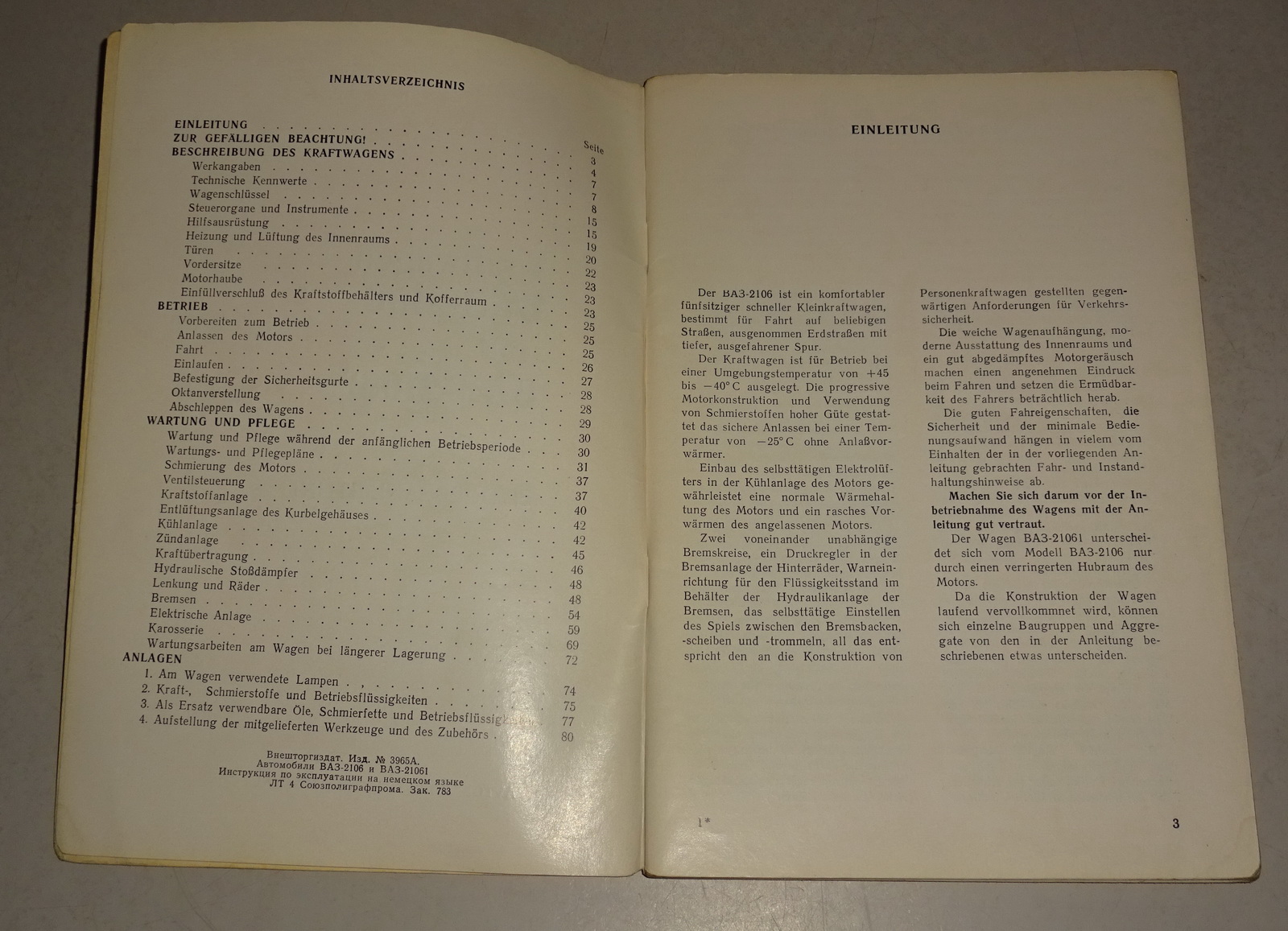 Betriebsanleitung / Handbuch Lada 1600 / 1500 Limousine VAZ 2106 / VAZ 21061