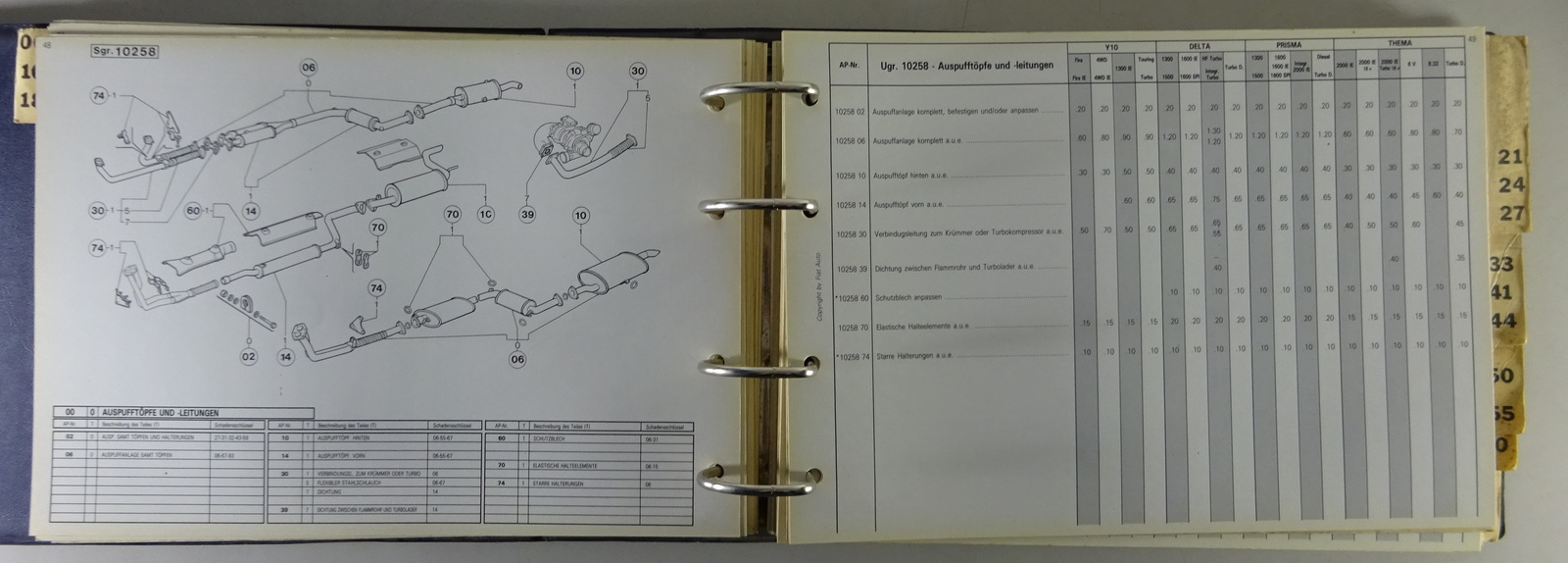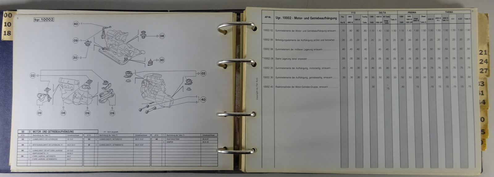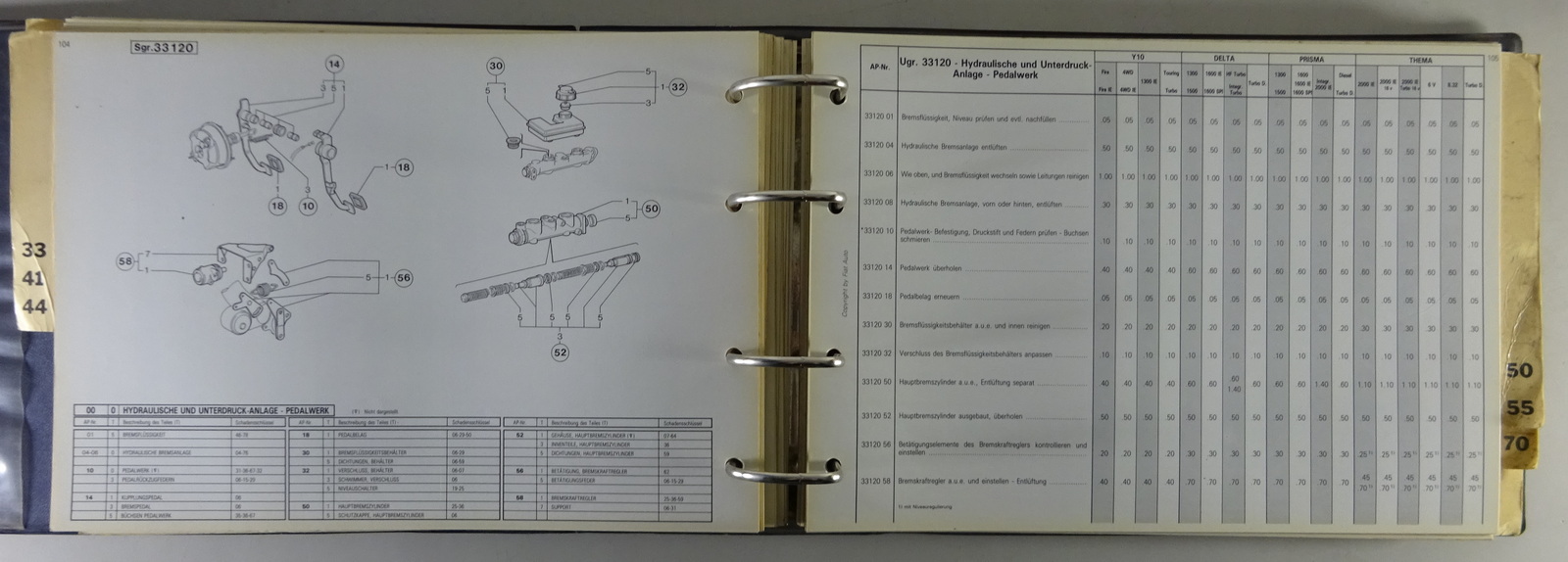 Werkstatthandbuch / Arbeitsrichtzeiten und Schadenscodierung original Lancia