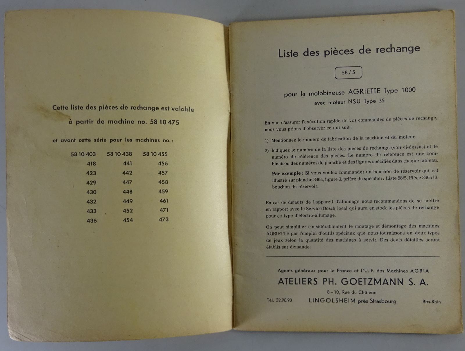Liste des pièces de rechange / Catalogue des pièces d'origine Agria