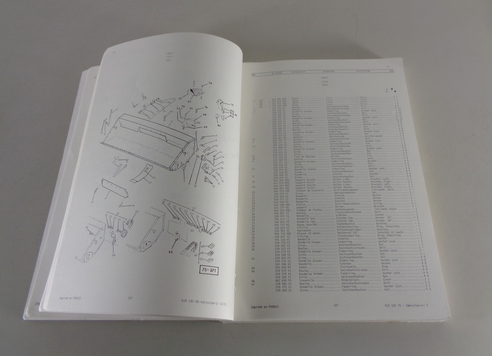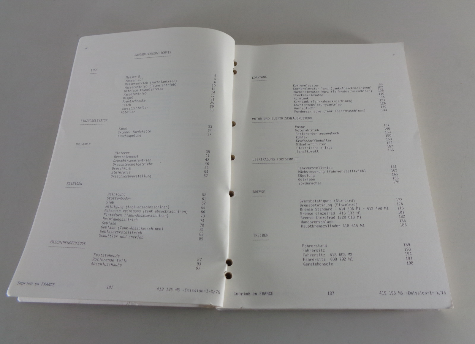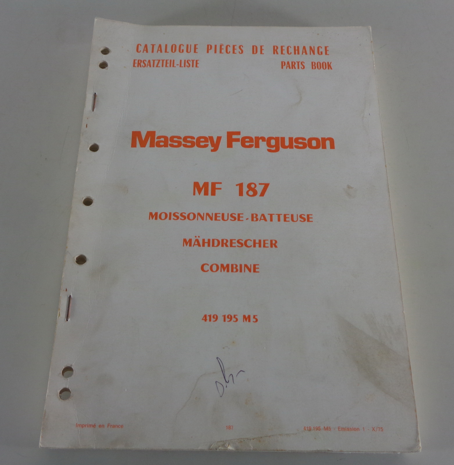 Teilekatalog / Parts Catalog Massey Ferguson Mähdrescher MF 187 von 10/1975