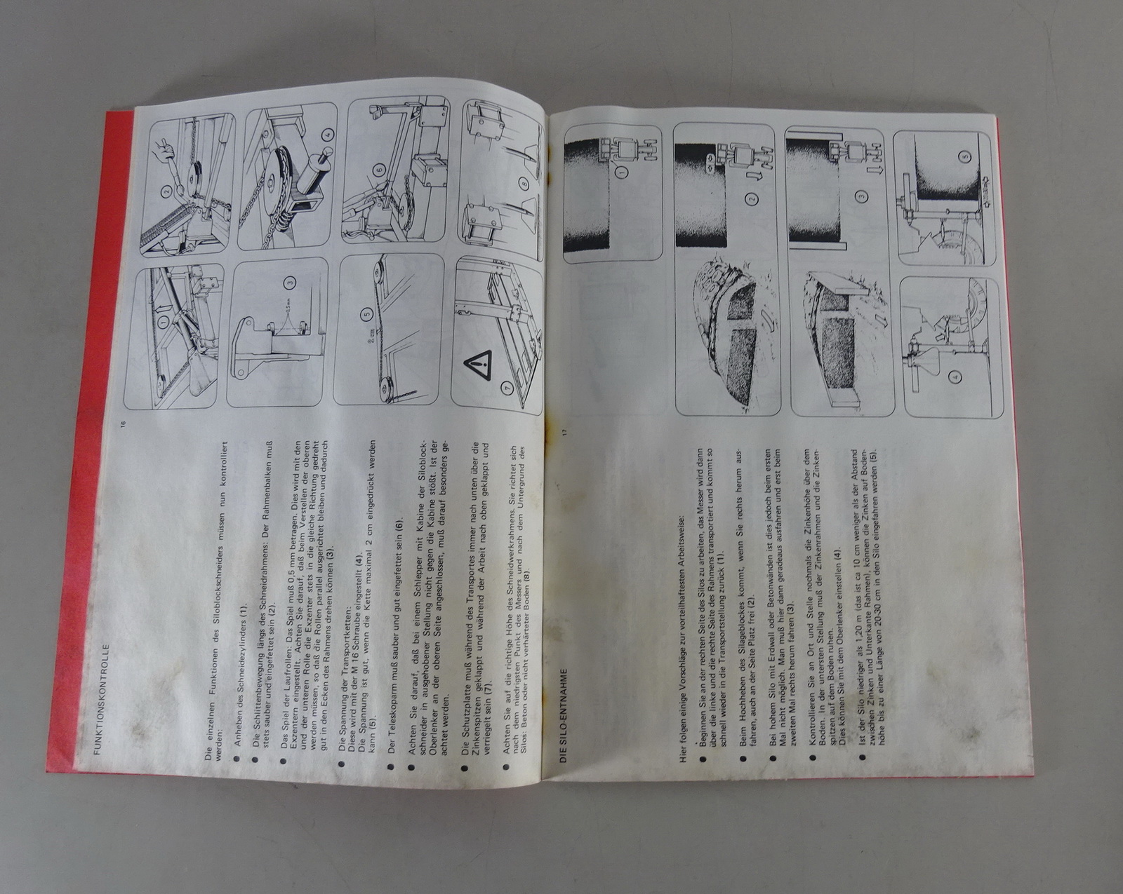 Inhalt: Sicherheitsempfehlungen, Allgemeine Beschreibung, Technische Daten, Verpackung und Montage, Montageanleitung, Schutzplatte, Schlepperanbau, Hydraulikanschlüsse, Bedienung der Hydraulik, Messertransport, Funktionskontrolle, Die Silo-Entnahme, Pflege und Wartung, Faustregeln, Extras, Hydraulischen Oberlenker, Anschluss Führerstand-satzes (extra lieferbar)