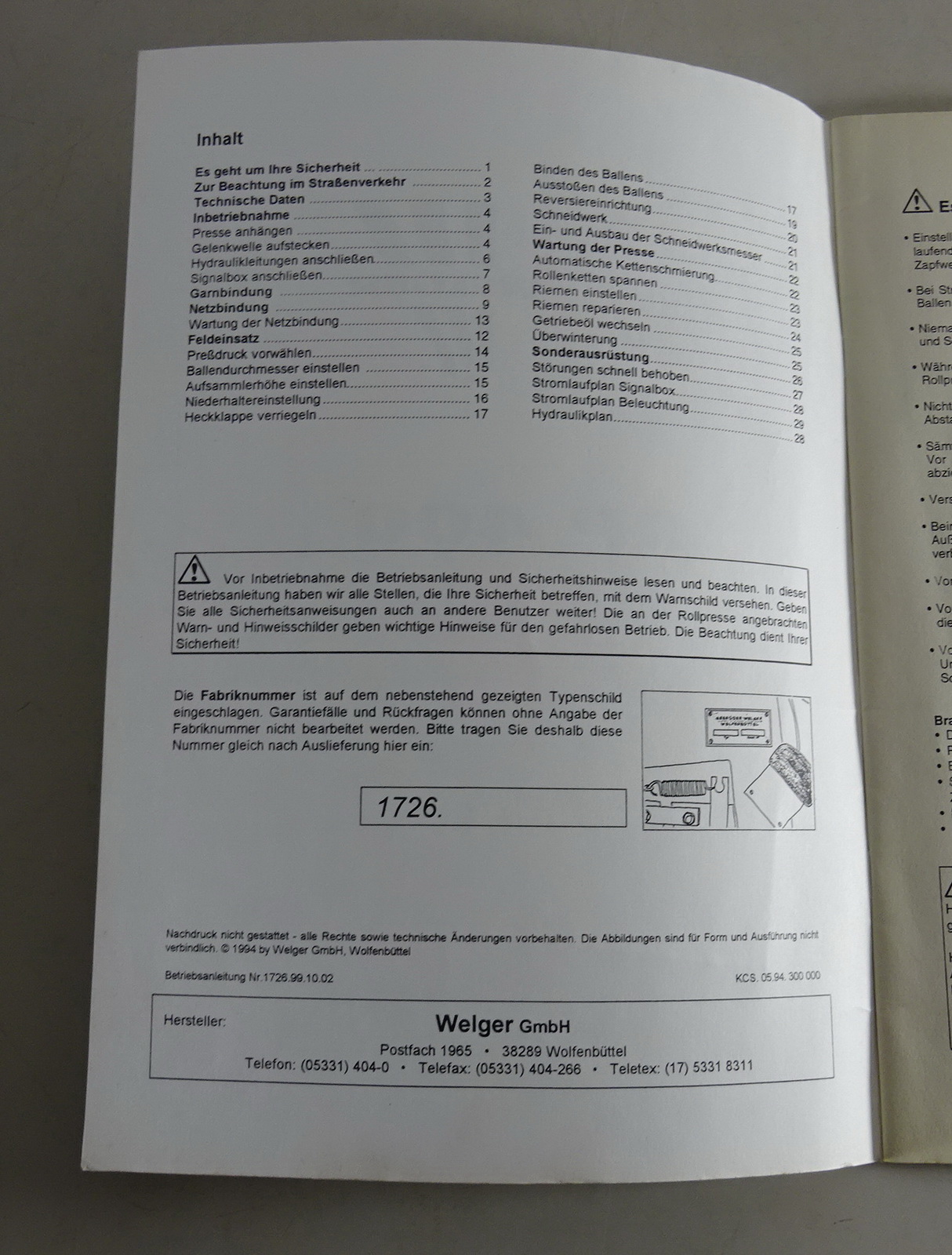Betriebsanleitung / Handbuch original Welger Welger RP400 - Rundballenpresse... mehr