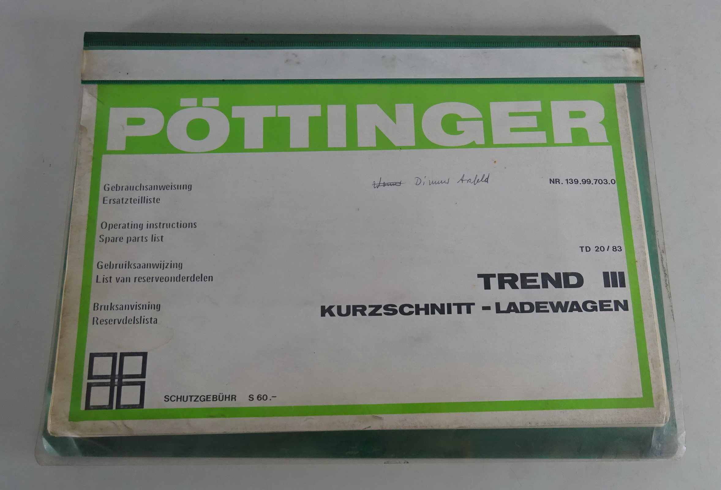 Ersatzteilliste/ Betriebsanleitung Pöttinger Ladewagen TREND III Stand 1983