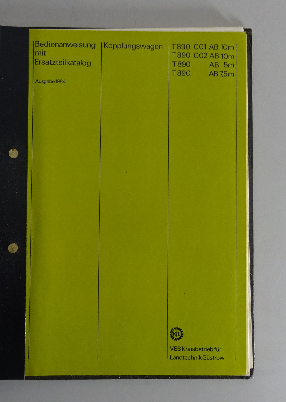 Betriebsanleitung / Handbuch KfL Kopplungswagen T890 Stand 1984