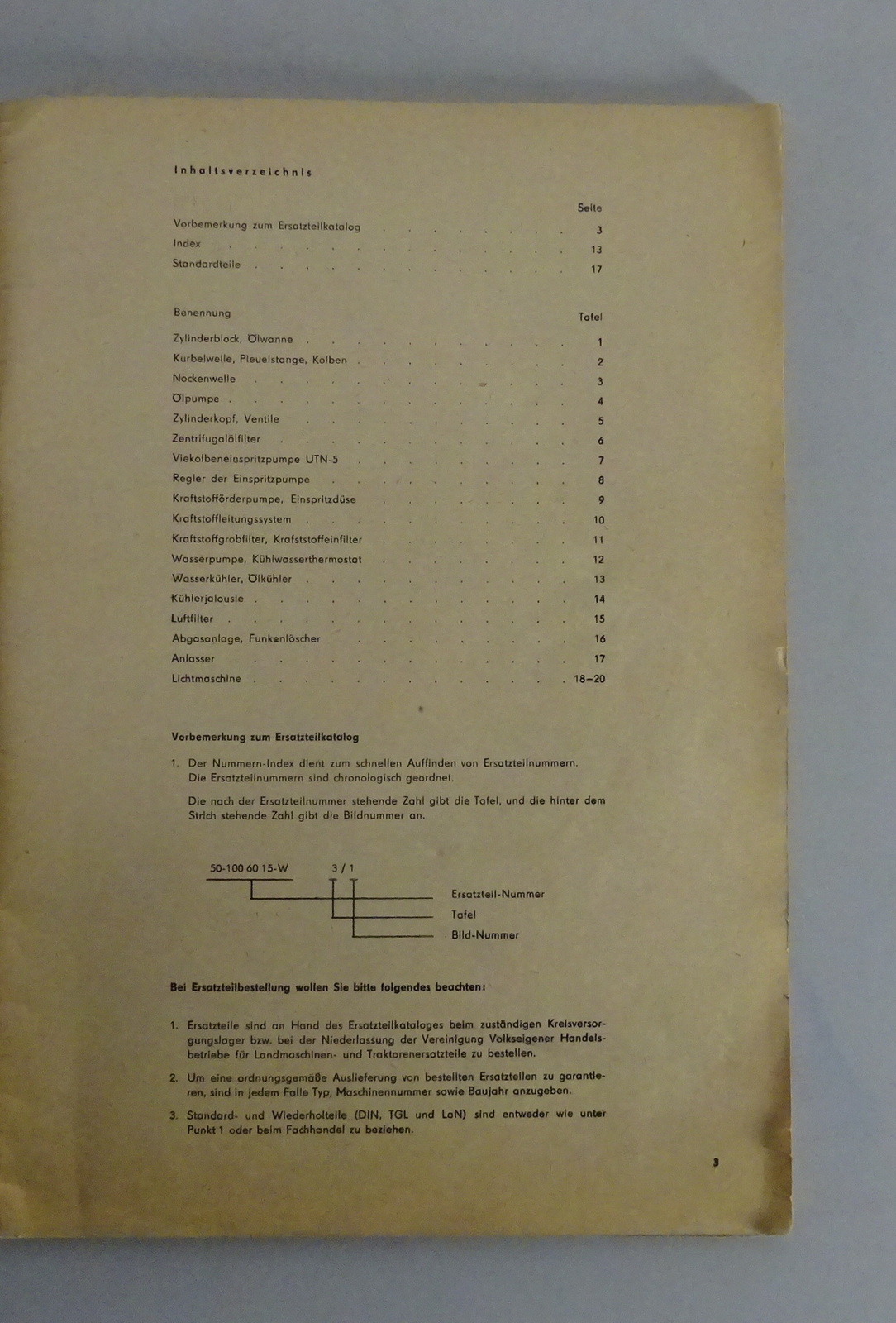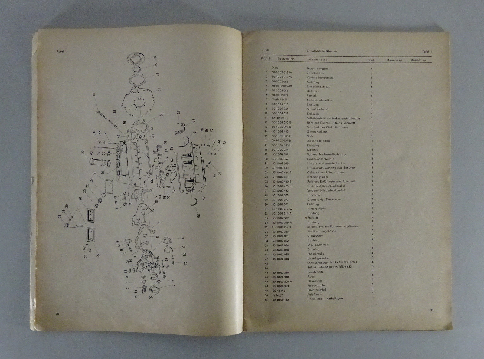 Produktinformationen "Teilekatalog Fortschritt Dieselmotor D-50 zum Schwadmäher E 301 Stand 07/1970"