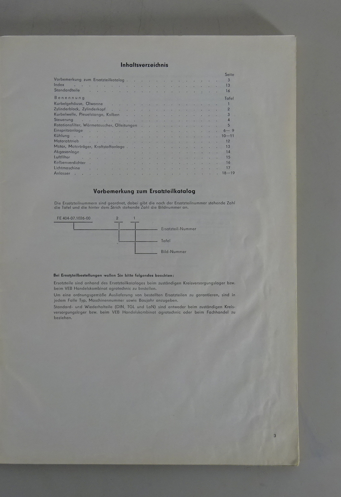 Produktinformationen "Teilekatalog Dieselmotor 6 VD 14,5/12-1 SRW für Feldhäcksler E 280 Stand 10/1972"