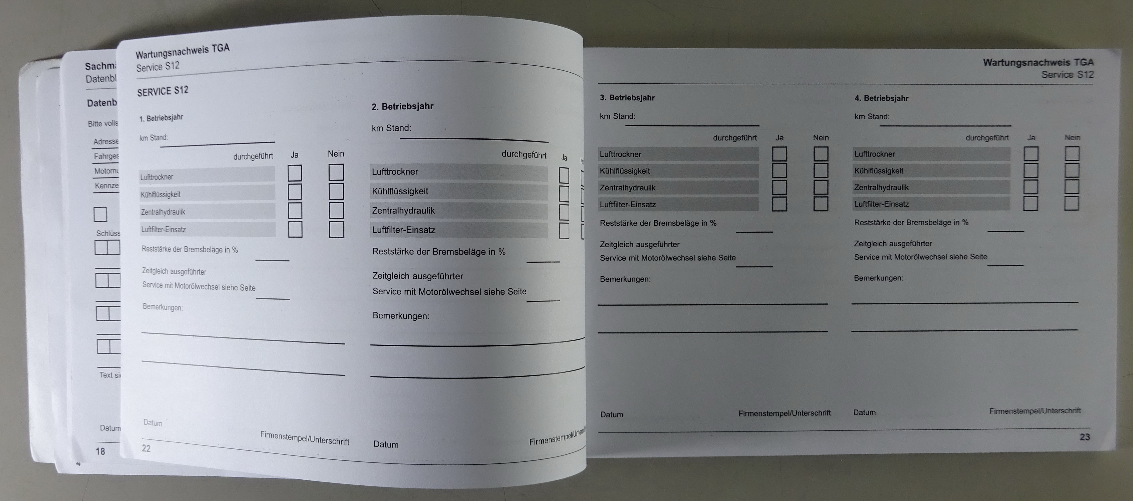 Inhalt: Betriebsanleitung, Scheckheft blanko ohne Einträge